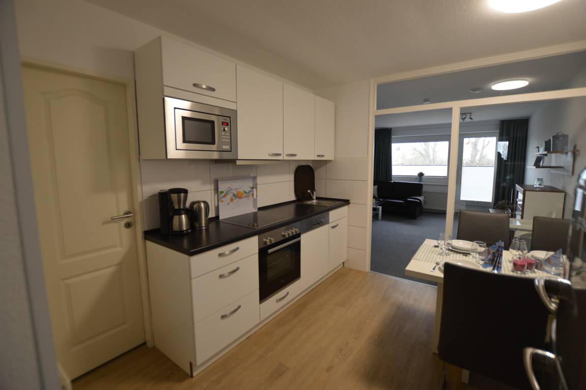 Ihre Ferienwohnung befindet sich in der Tenne oben rechts. Sie betreten die Wohnung über einen kleinen Flur, von dem bereits die beiden Kinderschlafzimmer abgehen. Ein Kinderzimmer verfügt über zwei Einzelbetten und eines über ein Bett. Ihre Einbauküche haben wir 2016 für Sie erneuert. Von hier aus erreichen Sie das Duschbad und das Elternschlafzimmer mit einem Doppelbett. Über das großzügige Wohn- Esszimmer erreichen Sie den sommerlichen Westbalkon. Direkt am Innenhof mit Blick auf den Spielplatz können Sie Ihren Kindern beim Spielen zusehen.