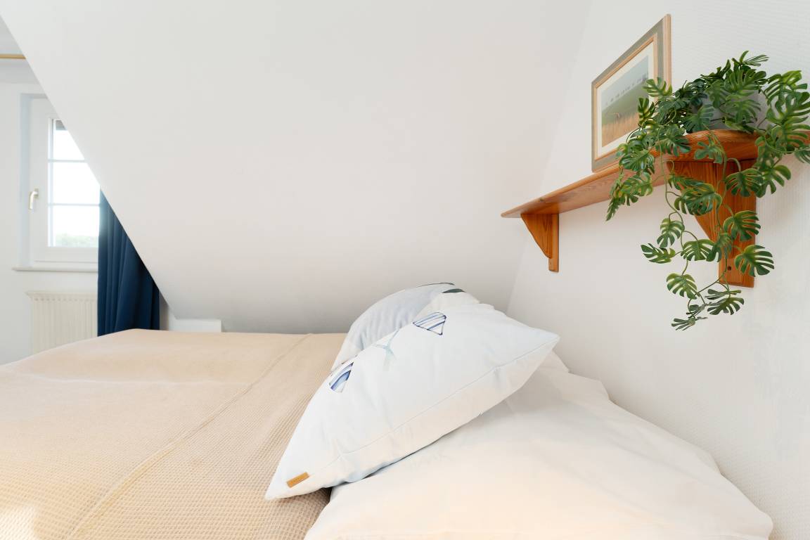 Schlafzimmer 3 (1.OG): 1 Doppelbett (2x 80x200 cm), Verdunkelung: Verdunkelungsvorhänge, kein Platz für ein Babybett vorhanden