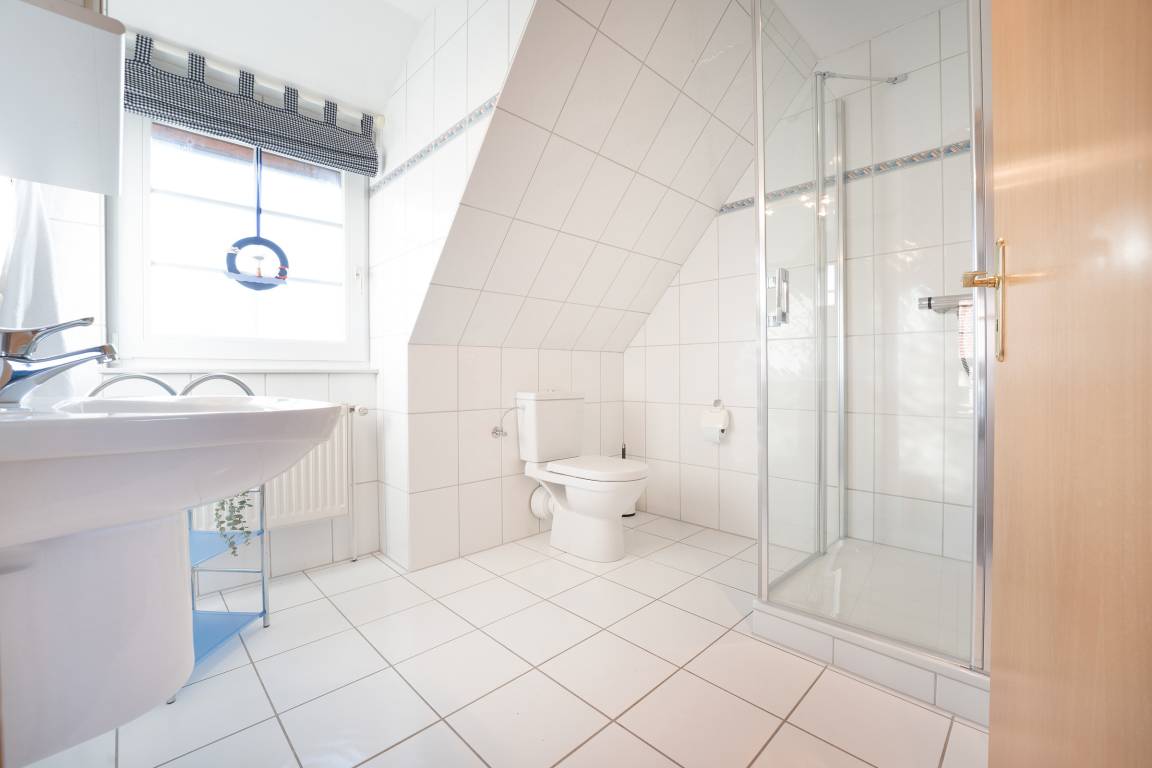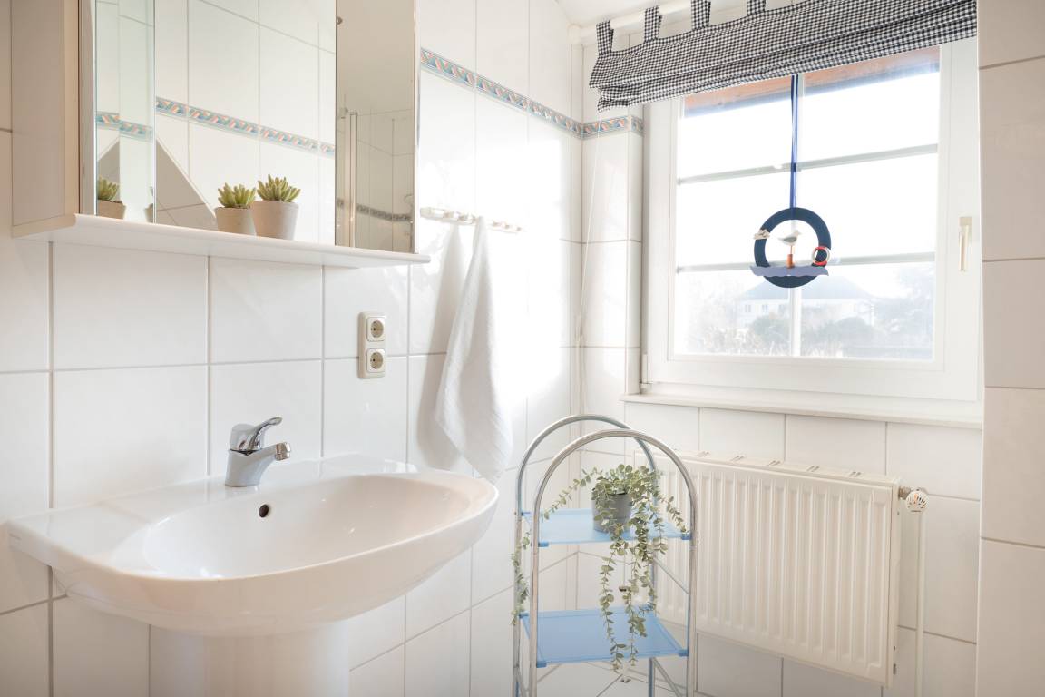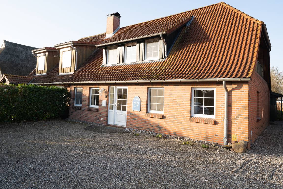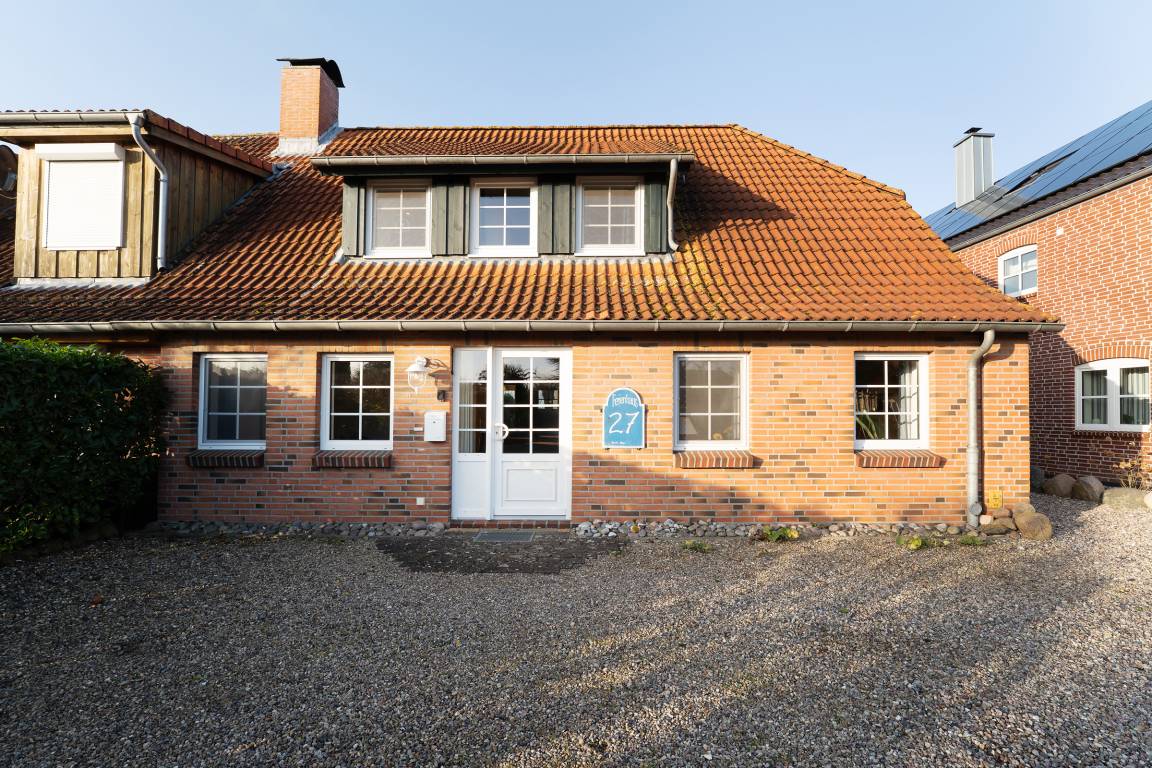 Die lichtdurchflutete Doppelhaushälfte empfängt Sie mit einem großzügigen Wohnbereich, der durch eine gemütliche Sitzecke, TV und viel Platz zum Entspannen überzeugt. Von hier aus gelangen Sie direkt in den liebevoll angelegten Garten, der mit Gartenmöbeln und Grillmöglichkeit ausgestattet ist – ideal für ruhige Stunden an der frischen Inselluft. Die offene Küche bietet alles, was Sie für die Urlaubsküche benötigen.
