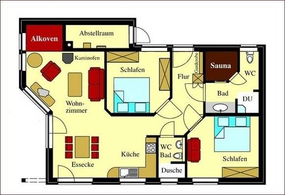 Mit Kamin, einem Alkoven und Fußbodenheizung ausgestattet versprechen die Ferienhäuser Erholung pur zu jeder Jahreszeit. Ein Highlight ist die eigene Sauna in jedem dieser Ferienhäuser, dadurch wir Ihr Aufenthalt zum individuellen Wellnesserlebnis.