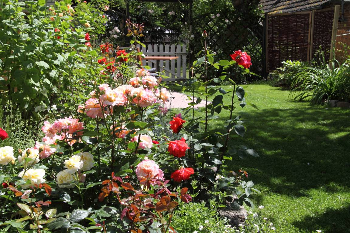 „Sehr freundliche und hilfsbereite Ferienwohnungsbesitzer. Ruhige Lage, aber alles ist in kurzer Zeit erreichbar ob Strand, Restaurant oder Einkaufsmöglichkeit. Ein wunderschöner erholsamer Garten und frische duftende Rosen im Zimmer.... TOP.“