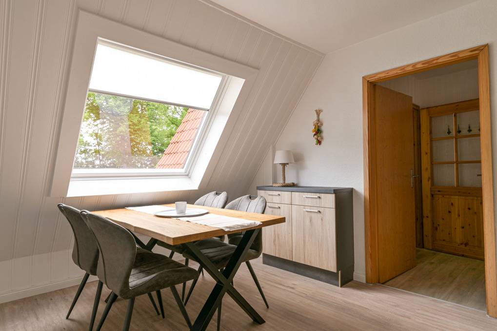 Diese Ferienwohnung liegt im Obergeschoss des Ferienhauses Nr. 3 und hat eine Grösse von 60 qm.