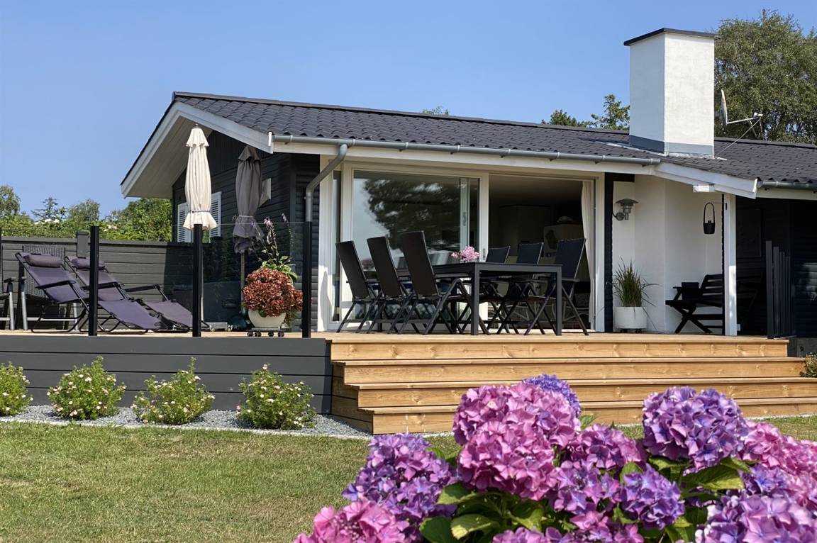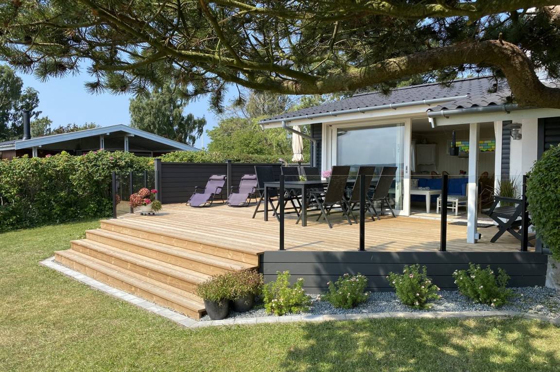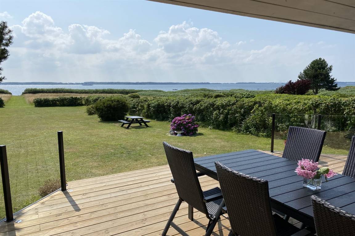 Nur einen Katzensprung vom Wasser entfernt liegt dieses schöne Ferienhaus. Den Blick auf das Meer können Sie sowohl vom Haus, von der Terrasse als auch vom Grundstück aus genießen.