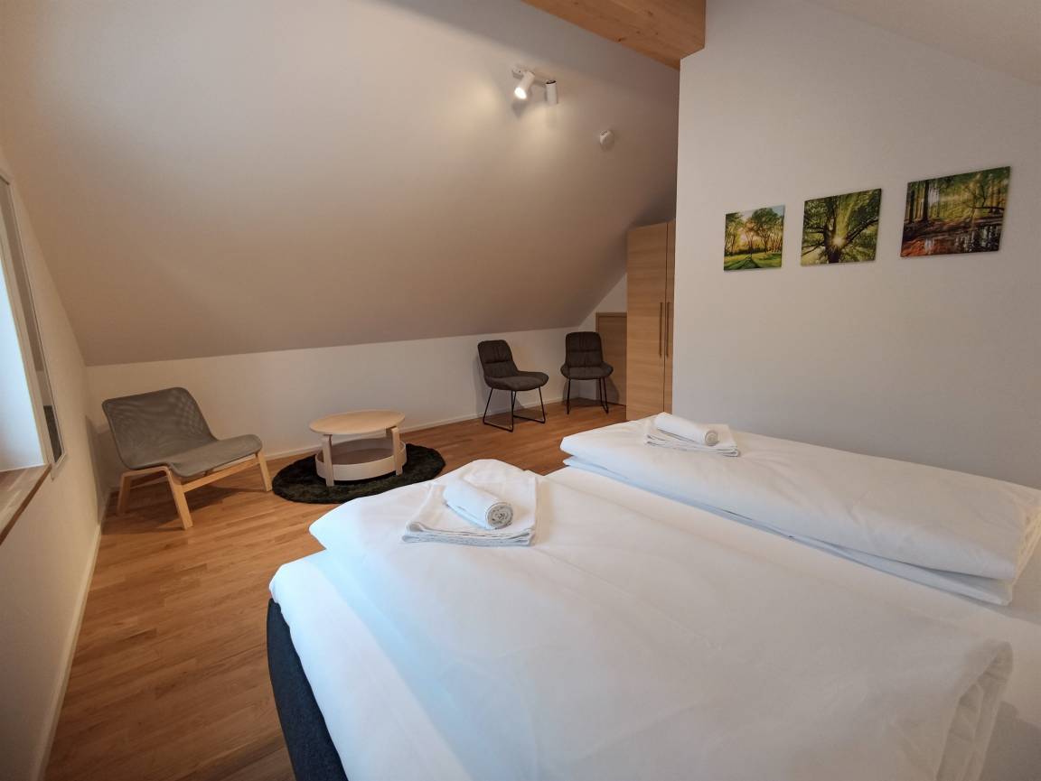 „Die Ferienwohnung ist sehr schön und optimal ausgestattet. Zwei Schlafzimmer, zwei Bäder, eine sehr gut ausgestattete Küche mit bequemer Essecke und einem gemütlichen Wohnzimmer lassen eigentlich keine Wünsche offen. Mit der Gästekarte kommt man kostenlos durch die naheliegende Bushaltestelle an viele (und auch recht weit entfernte) Ausflugsziele.. und Wanderungsmöglichkeiten sind auch reichlich vorhanden. Wir waren zwei Ehepaare, konnten hier einen sehr schönen und erholsamen Urlaub geniessen und würden die Ferienunterkunft jederzeit weiterempfehlen.“