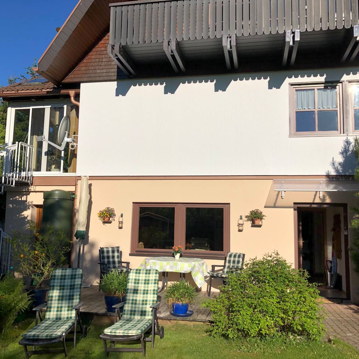 Die Lage garantiert absolute Ruhe, der Garten und die Terrasse sind nicht einsehbar, so daß sie ganz ungestört für sich sein können.
