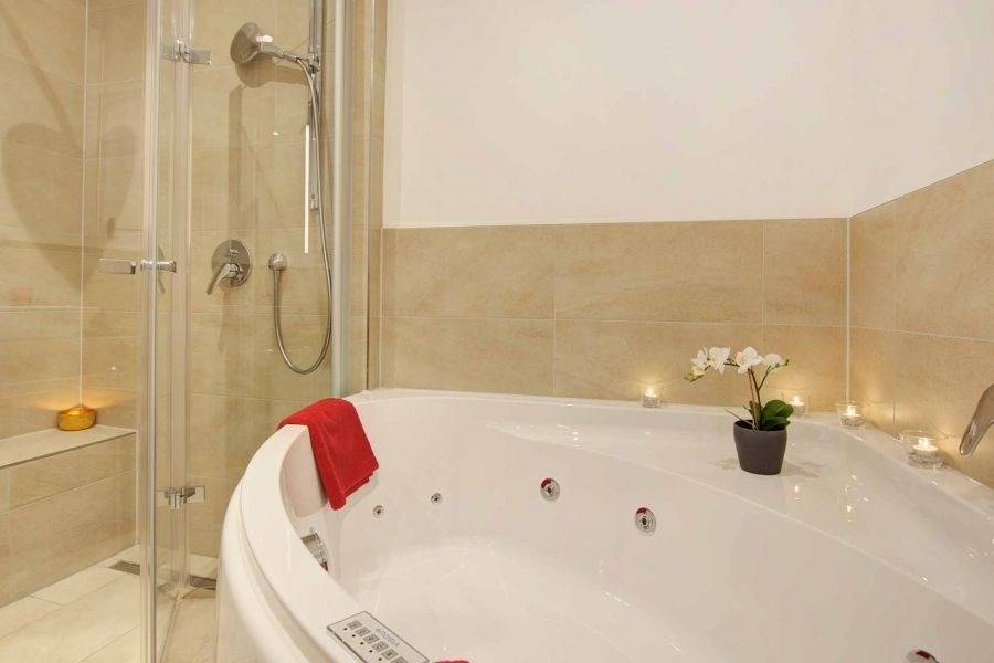 Die Duschen verfügen sowohl über einen Regenduschkopf als auch über eine Handbrause. Eine Sitzbank in den Duschen lädt zum Entspannen nach einem langen Ski- oder Wandertag ein.