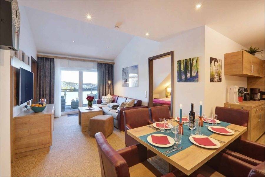 Moderne Luxuswohnung direkt am Skihang mit Traumausblick und perfekten Sonnenaufgängen, 2 Schlafzimmer und Schlafcouch im Wohnzimmer für bis zu 6 Personen, in Kombination mit der Ferienwohnung 30 (Black) für bis zu 12 Personen,