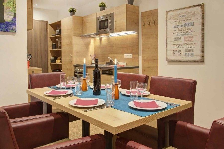 Die Küchen sind selbstverständlich ausreichend mit Geschirr, Besteck und Kochutensilien für jeweils 6 Personen ausgestattet und verfügen über einen extra großen Kühlschrank, Mikrowelle, Geschirrspüler, Ceran-Feld, Backofen, Kaffee- und Kapselmaschine, Toaster, Wasserkocher uvm. Einzelheiten finden Sie in der detaillierten Ausstattungsliste.