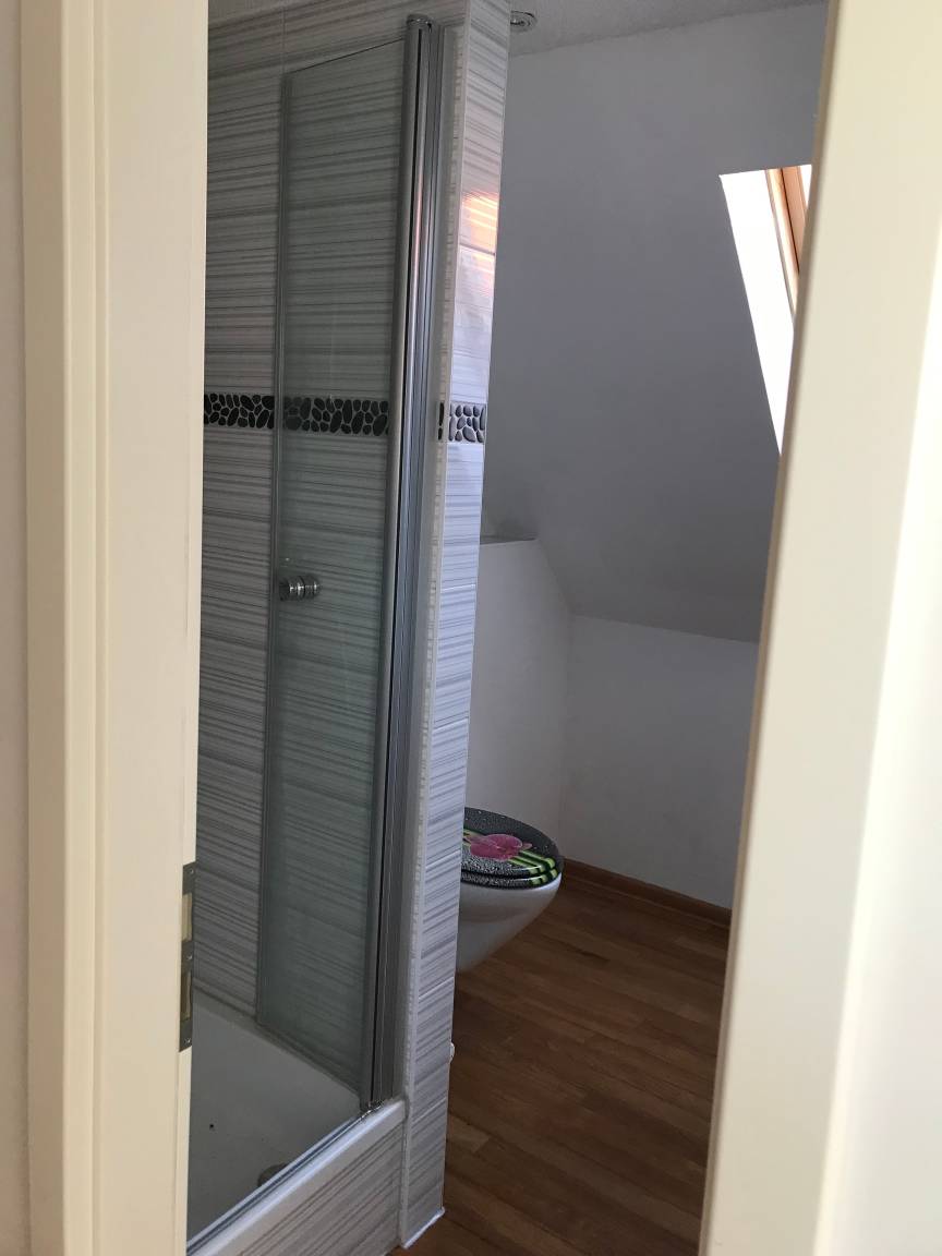 Ansonsten befindet sich im Haus unten noch ein Schlafzimmer mit angrenzendem Bad (mit Badewanne). Die Treppe hinauf geht es zum lichtdurchfluteten zweiten Schlafzimmer, welchem ebenfalls über ein Bad (mit Dusche) verfügt.