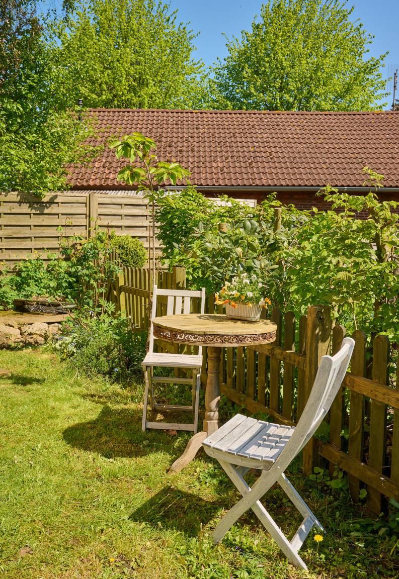 Kleine lauschige Sitzecke im ruhigen Garten rundet das Angebot ab. Kostenloser Parkplatz am Haus.