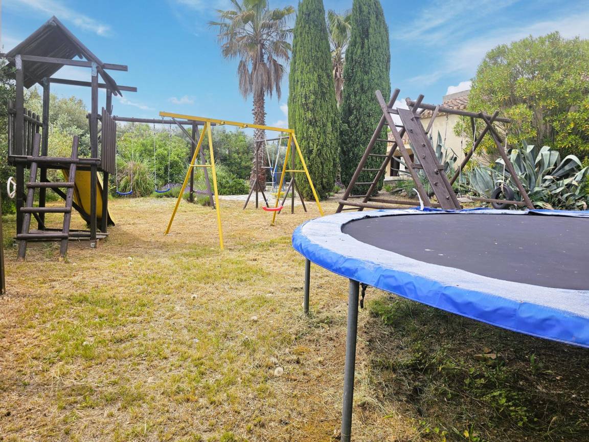 Gartentüren, Terrasse, Garten(alleinige Nutzung, umzäunt), Gartenmöbel, Liegen, BBQ(Holzkohle), 3x Parkplatz, Trampolin, Pool(alleinige Nutzung, Wasseralarm, 10 x 5 m., geöffnet von Mai bis einschließlich Okt), Gartenlounge, Schaukel