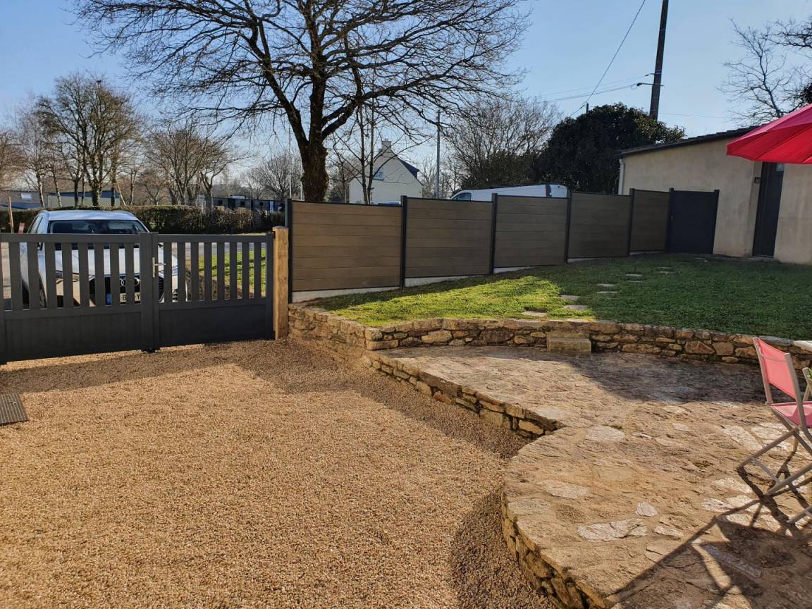 Draußen, auf eingezäuntem Grundstück (Zaun wird errichtet): eine große Terrasse, ein Garten, eine Hauswirtschafts-/Waschküche, die an die Garage angrenzt. Private Parkplätze vor der Garage und dem Haus. Im Sommer genießen Sie die Annehmlichkeiten des Campingplatzes gegenüber (Brot- und Lebensmittelgeschäft). Gite neben einer ganzjährigen Vermietung. Der Campingplatz Les Rives de Vilaine ist ein kleiner Familiencampingplatz ohne Belästigung (kein Schwimmbad oder Unterhaltung)