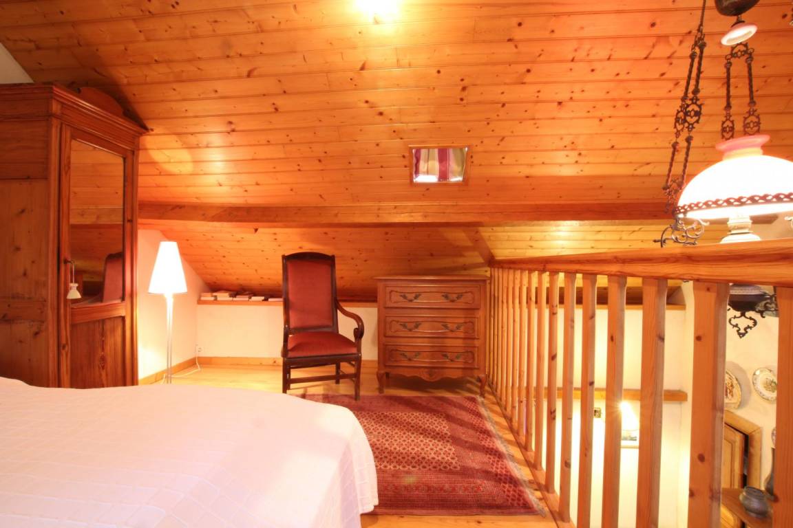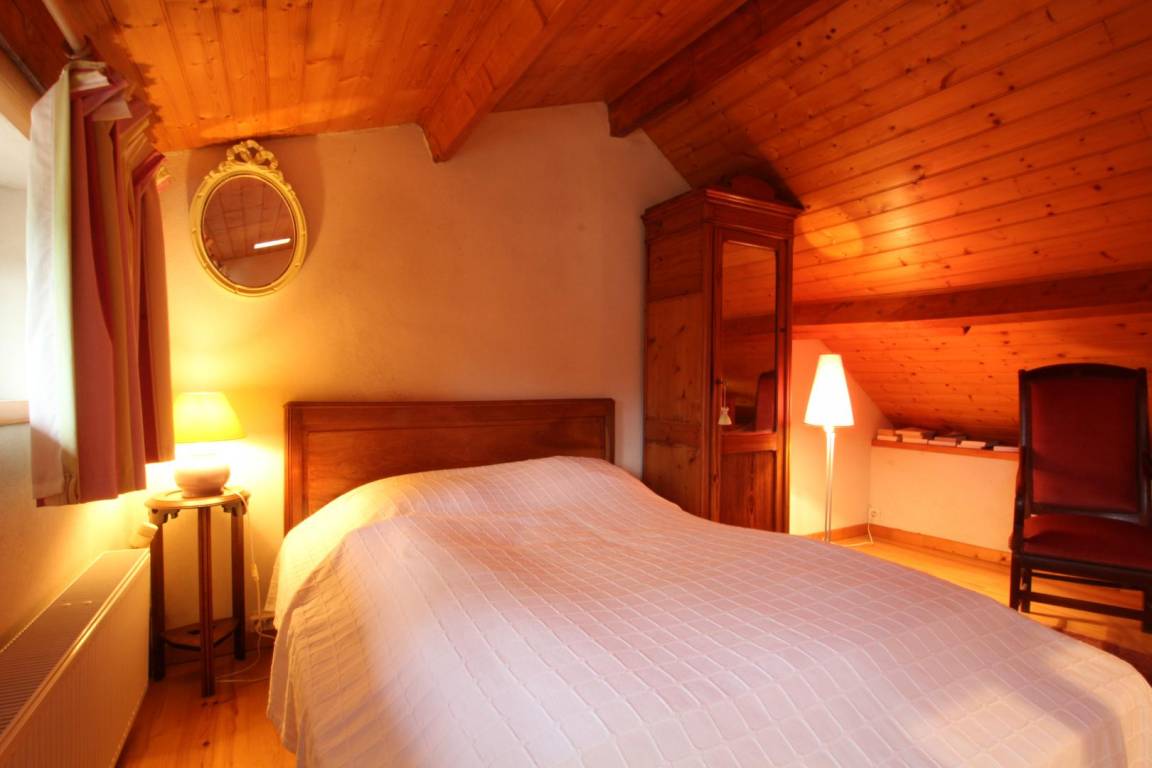Doppelhaushälfte neben dem Haus des Eigentümers. Erdgeschoss: Wohnzimmer (TV, Internet), Kochnische (Minibackofen, Mikrowelle), Duschbad (Waschmaschine) mit WC. Obergeschoss: 1 Schlafzimmer auf der Galerie (Doppelbett). Ölzentralheizung. Alle Nebenkosten inklusive. Bettwäsche und Handtücher können gemietet werden. Reinigungsservice gegen Aufpreis. Gemeinsamer, umzäunter Garten. Gartenmöbel, Grill, Sonnenliegen.