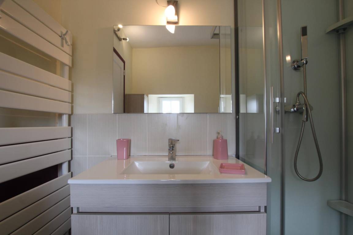 Doppelhaushälfte neben dem Haus der Eigentümer. Küche (Backofen, Geschirrspüler, Kühlschrank mit Gefrierfach, Mikrowelle). Esszimmer mit Sitzecke (Internetzugang). Im ersten Stock: Schlafzimmer 1 (1 Doppelbett 140x200 cm), Duschbad mit WC. Im zweiten Stock: Schlafzimmer 2 (2 Einzelbetten 90x190 cm). Babyausstattung auf Anfrage (Kinderbett, Hochstuhl und Babybadewanne). Bettwäsche und Handtücher können gemietet werden. Reinigungsservice gegen Aufpreis. Strom und elektrische Heizung sind nicht im Preis enthalten. Privater, nicht umzäunter Innenhof. Terrasse. Picknicktisch. Grill. Gemeinsamer, 8 x 4 m großer, ganzjährig beheizter Innenpool (geöffnet von 9:00 bis 22:00 Uhr). Spielplatz für Kinder: Trampolin und Schaukel zur gemeinsamen Nutzung durch die drei Ferienhäuser. Schaukel. Ein Ferienhaus bietet Platz für 14 Personen, ein anderes für 6 Personen.
