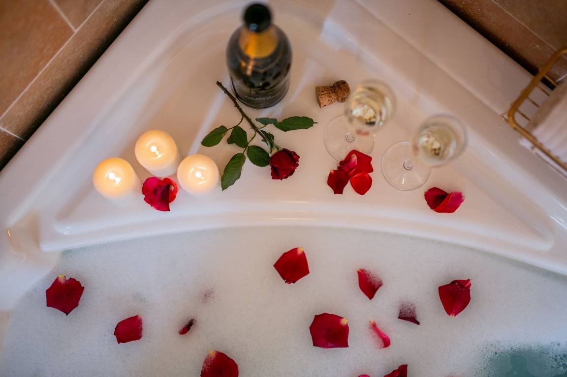 Schlafzimmer mit Bad 1: großes Doppelbett (Breite: 170m, Länge: 203m), WiFi Internet, Internet, Klimaanlage, Fliegengitter, Satelliten-TV, TV, zwei Sessel, Kamin, Whirlpool-Badewanne, Waschbecken, WC, Bidet, Badewanne, Dusche, Bügeleisen, Fön, Trockner, Waschmaschine.