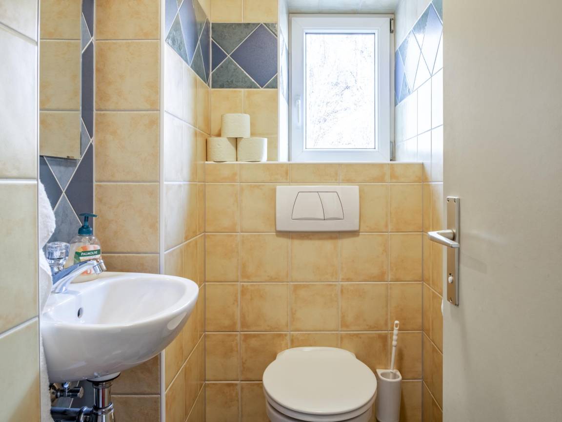 Layout : In der 1. Etage(privater Eingang): Küche mit Esstisch(11 Personen), Kochherd(4 Kochplatten), Kaffeemaschine(Filter), Backofen, Geschirrspüler, Kühlschrank(+ Gefrierfach) , Wohn/Esszimmer mit Doppelschlafcouch, TV, Sitzecke , Schlafzimmer mit Schlafcouch 1 Pers., Doppelbett(180 x 200 cm) , Schlafzimmer mit Doppelbett(180 x 200 cm), Doppelschlafcouch , Schlafzimmer mit Doppelbett(180 x 200 cm) , Badezimmer mit Waschbecken, Dusche , Badezimmer mit Waschbecken, Dusche , Badezimmer mit Waschbecken, Dusche, Toilette, Urinal , Infrarotsauna, Toilette