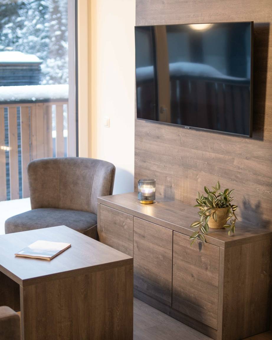 Stellen Sie sich vor, Sie wachen auf mit fantastischen Ausblicken auf rollende Wiesen und majestätische Berggipfel direkt vor Ihrem Fenster. Unsere Kollektion von 21 neu gestalteten Apartments reicht von gemütlichen Einzimmer-Rückzugsorten bis zu geräumigen Vierzimmer-Oasen von 54 bis 120 Quadratmetern. Jede Ecke unserer Apartments ist mit geschmackvoller österreichischer Einrichtung geschmückt, die modernen Stil mit traditionellem Charme verbindet. Egal, ob Sie mit einem Partner, Ihrer Familie oder einer Gruppe von Freunden reisen, eine ideale Oase wartet auf Sie.