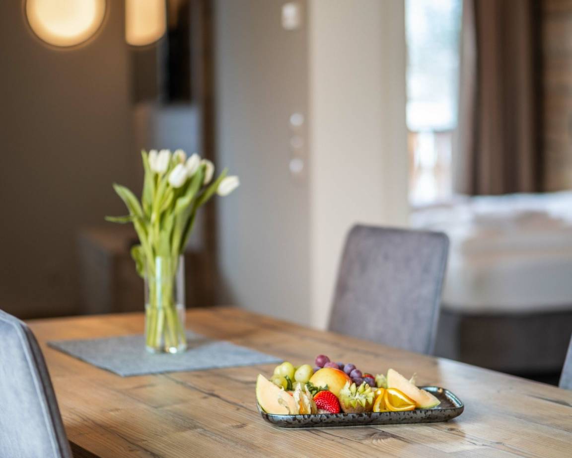 Stellen Sie sich vor, Sie wachen auf mit fantastischen Ausblicken auf rollende Wiesen und majestätische Berggipfel direkt vor Ihrem Fenster. Unsere Kollektion von 21 neu gestalteten Apartments reicht von gemütlichen Einzimmer-Rückzugsorten bis zu geräumigen Vierzimmer-Oasen von 54 bis 120 Quadratmetern. Jede Ecke unserer Apartments ist mit geschmackvoller österreichischer Einrichtung geschmückt, die modernen Stil mit traditionellem Charme verbindet. Egal, ob Sie mit einem Partner, Ihrer Familie oder einer Gruppe von Freunden reisen, eine ideale Oase wartet auf Sie.