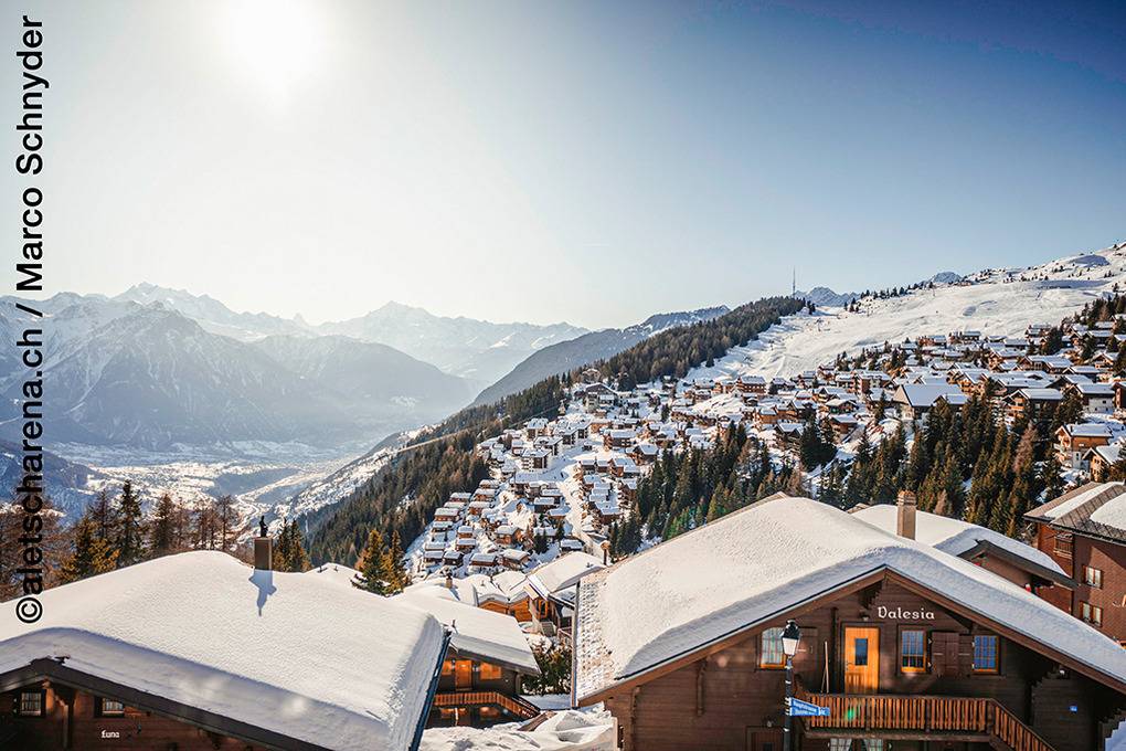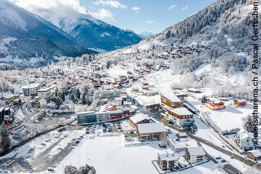 Ort: Fiesch. Ruhige Lage in der Nähe der Ortsmitte. Schöner Blick auf die umliegende Bergwelt. Hotel mit gemütlicher Bar, Sonnenterrasse 100 m. Ortsmitte, Bäcker, Supermarkt 250 m. Bahnhof, neue Gondelbahn ins Skigebiet 700 m.