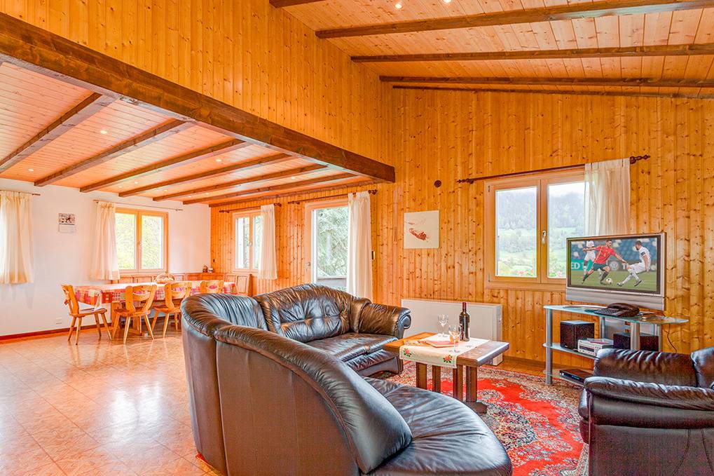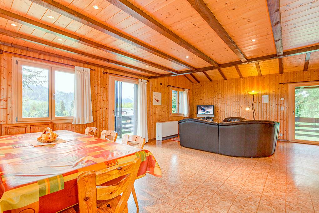 Haus: Regionstypisches Chalet mit großem Platzangebot. 4-Zimmerhaus mit 100 qm Wohnfläche über 2 Etagen. Gemütlich-rustikales Chalet-Ambiente durch Holzvertäfelung in allen Räumen. Internet kostenlos über W-Lan. E-Heizung. Skistellmöglichkeit im Eingangsbereich. Terrasse mit Sitzmöbeln. Pkw-Zufahrt bis auf 50 m, danach Fußweg zum Chalet. 1 Pkw-Stellplatz vorhanden.