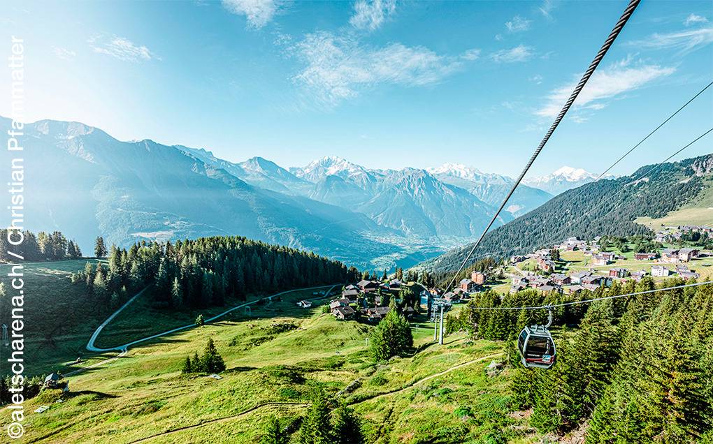 Ort: Fiesch. Ruhige Lage am Ortsrand mit schönem Blick auf die Bergwelt und ins Fieschertal. Guter Standort: Seilbahn ins Wandergebiet Eggishorn und Ortsmitte Fiesch jeweils nur 500 m.
