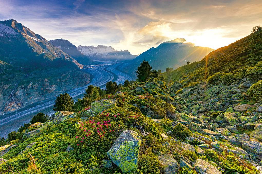Ort: Fiesch. Zentrumsnahe Lage mit Blick auf Fiesch und die umliegende Bergwelt. Ortsmitte 600 m. Neue Gondel, Bahnhof 900 m.
