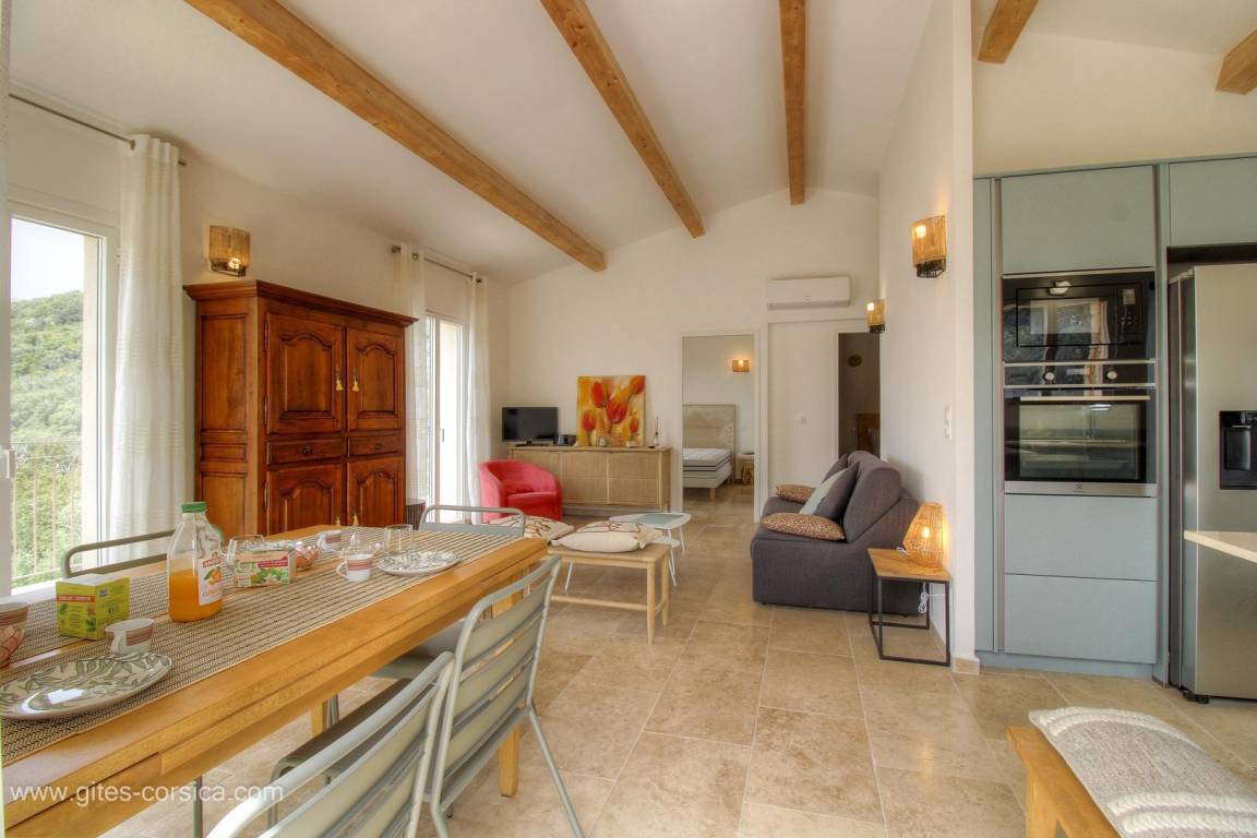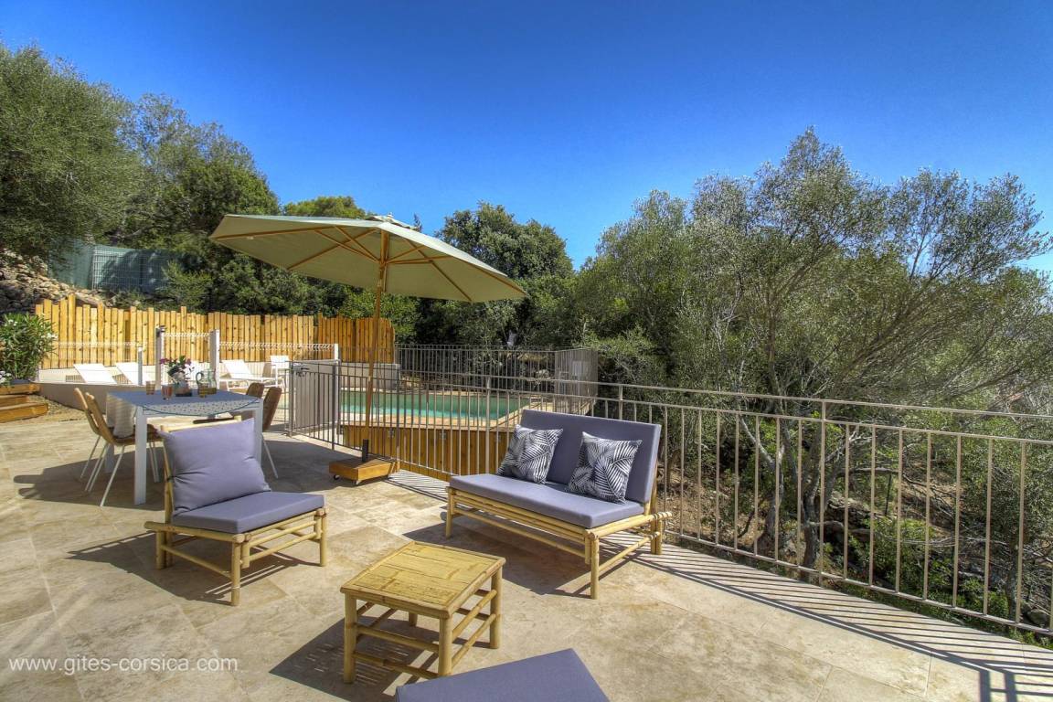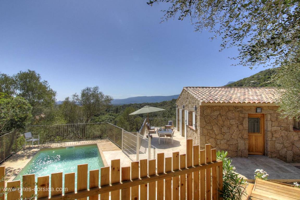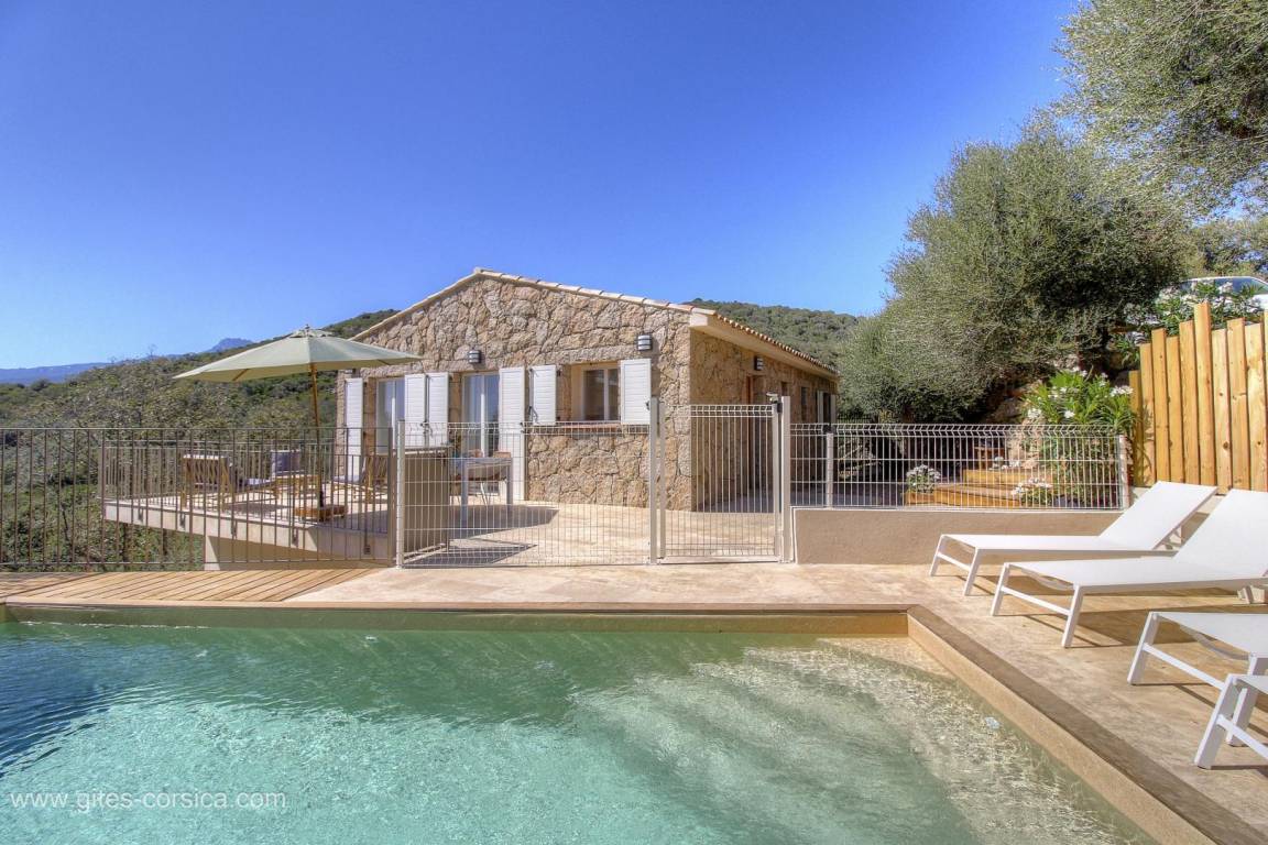 „Nous avons passé un séjour merveilleux, qui a débuté sous les meilleurs auspices grâce à l’accueil exceptionnel du propriétaire. Ses délicates attentions et le temps qu’il nous a consacré pour tout nous expliquer nous ont particulièrement touchées. La maison est encore plus belle que sur les photos: Décorée avec énormément de goût, d’une propreté irréprochable, et parfaitement équipée, notamment avec la climatisation, que nous avons grandement appréciée en pleine canicule. La piscine, d’une propreté exemplaire elle aussi, est parfaitement entretenue. Le cadre est tout simplement idyllique. La vue sur les montagnes est à couper le souffle, et la maison est située dans un hameau paisible, idéal pour se ressourcer en toute tranquillité. Un grand bravo au propriétaire pour la qualité de sa prestation. Quand nous reviendrons en Corse, c’est certain: Nous reviendrons chez lui !“