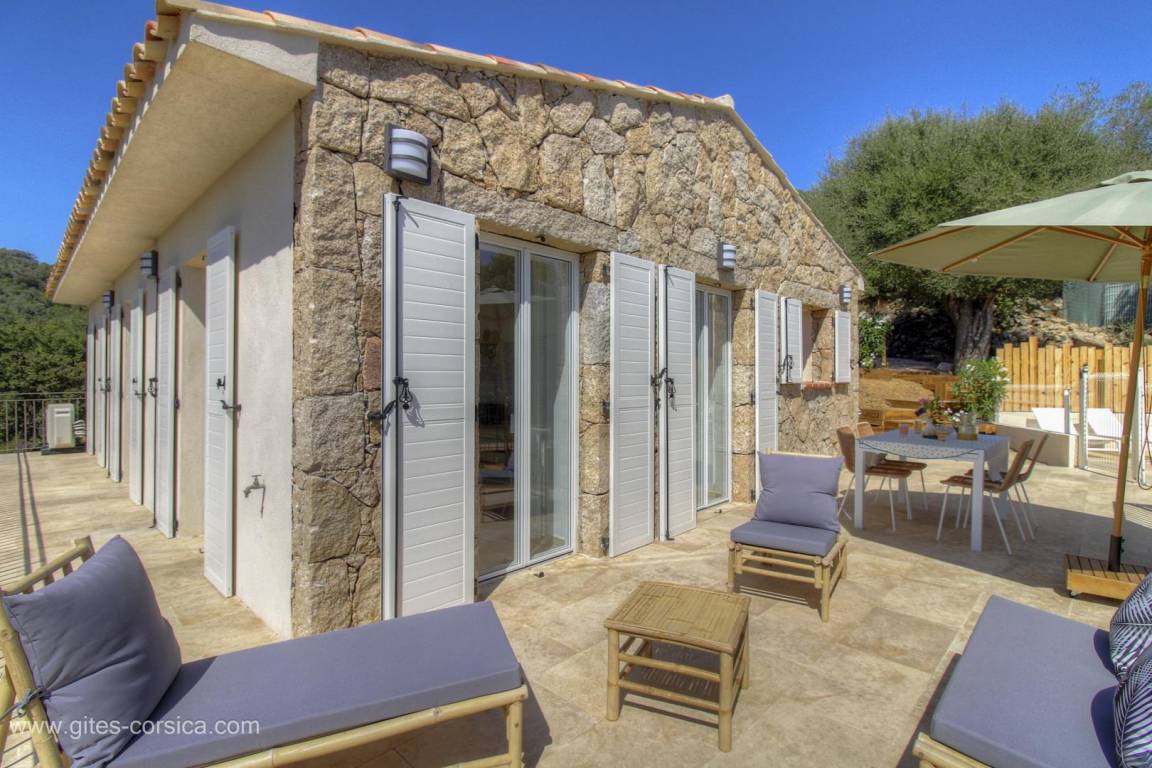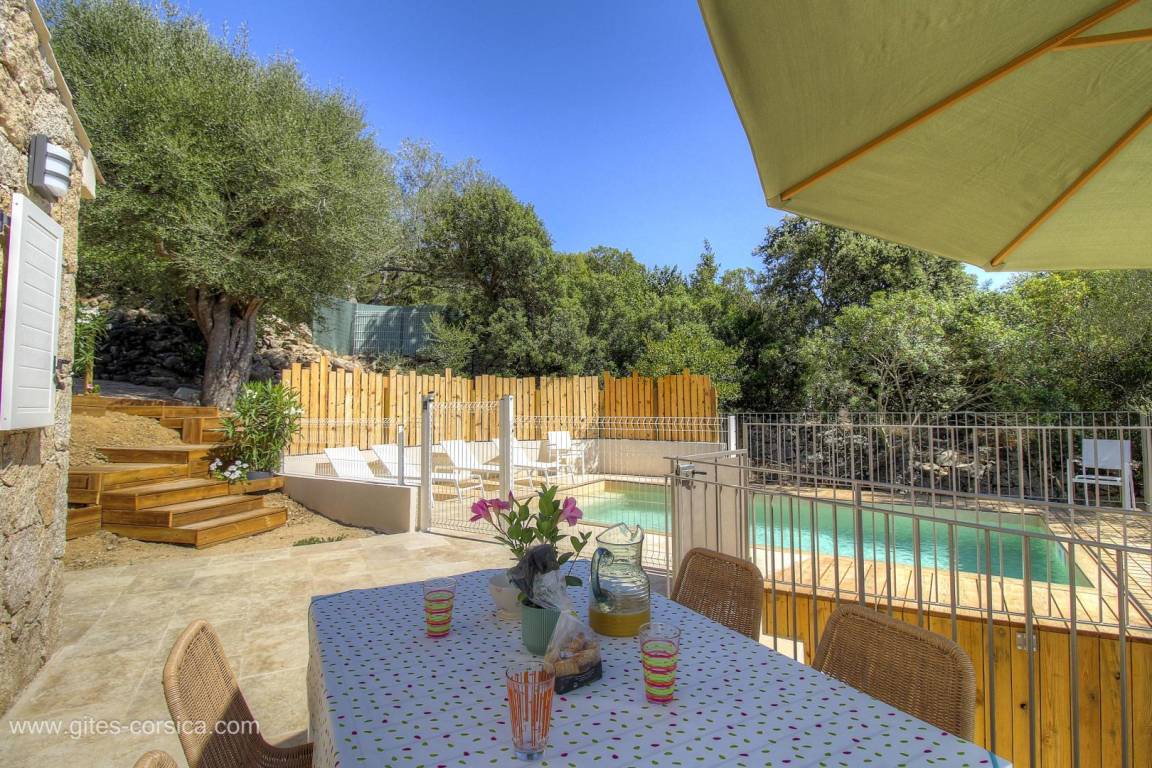 „Dans ce gîte, idéalement situé à 10 mns de l ' aéroport, et à 30 mns des plages de Santa Giulia et Palombaggia, tout a été pensé pour passer le meilleur des séjours. La bâtisse, récente mais authentique, est parfaitemement équipée et de tout confort. La terrasse panoramique vous permettra de profiter pleinement de la vue sur la plaine de Figari et sur les montagnes avoisinantes. Enfin, la piscine à 25 degrès vous rafrichira à tout moment de la journée. Un dernier mot, pour Pierre-Paul, le propriétaire des lieu, dont la gentillesse n ' a d' égal que son dévouement pour ses hôtes!“