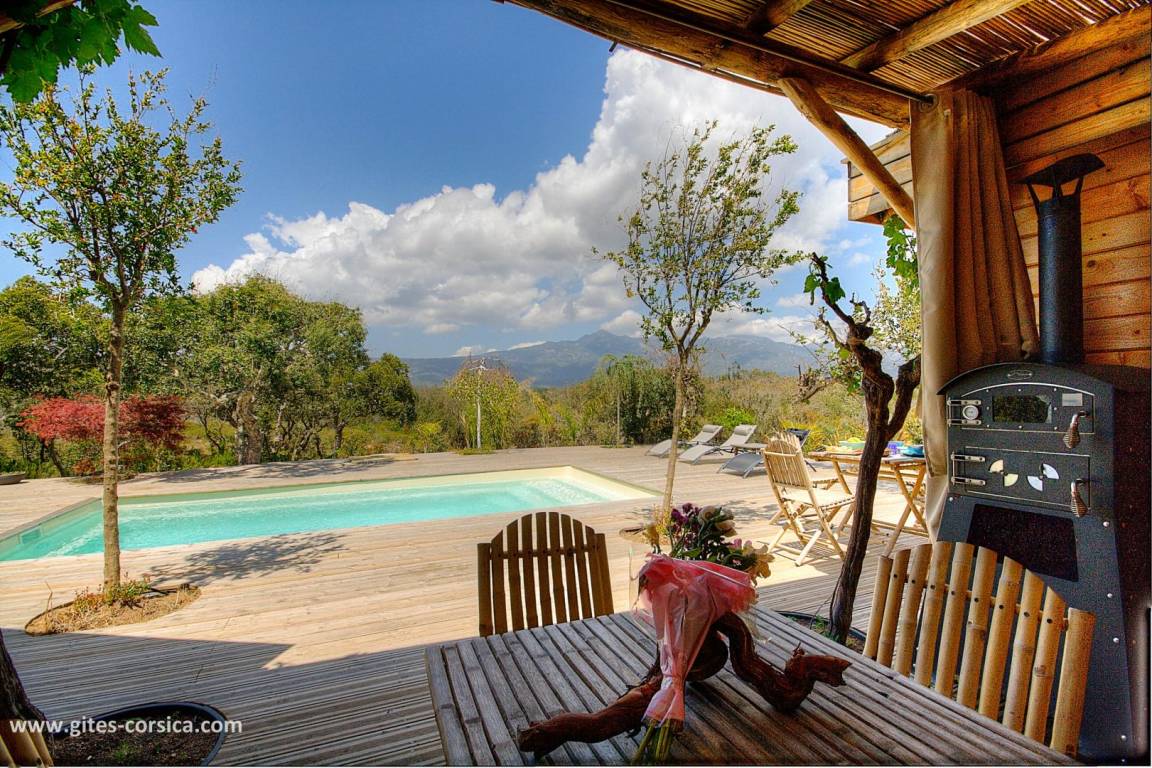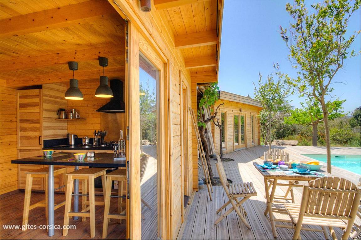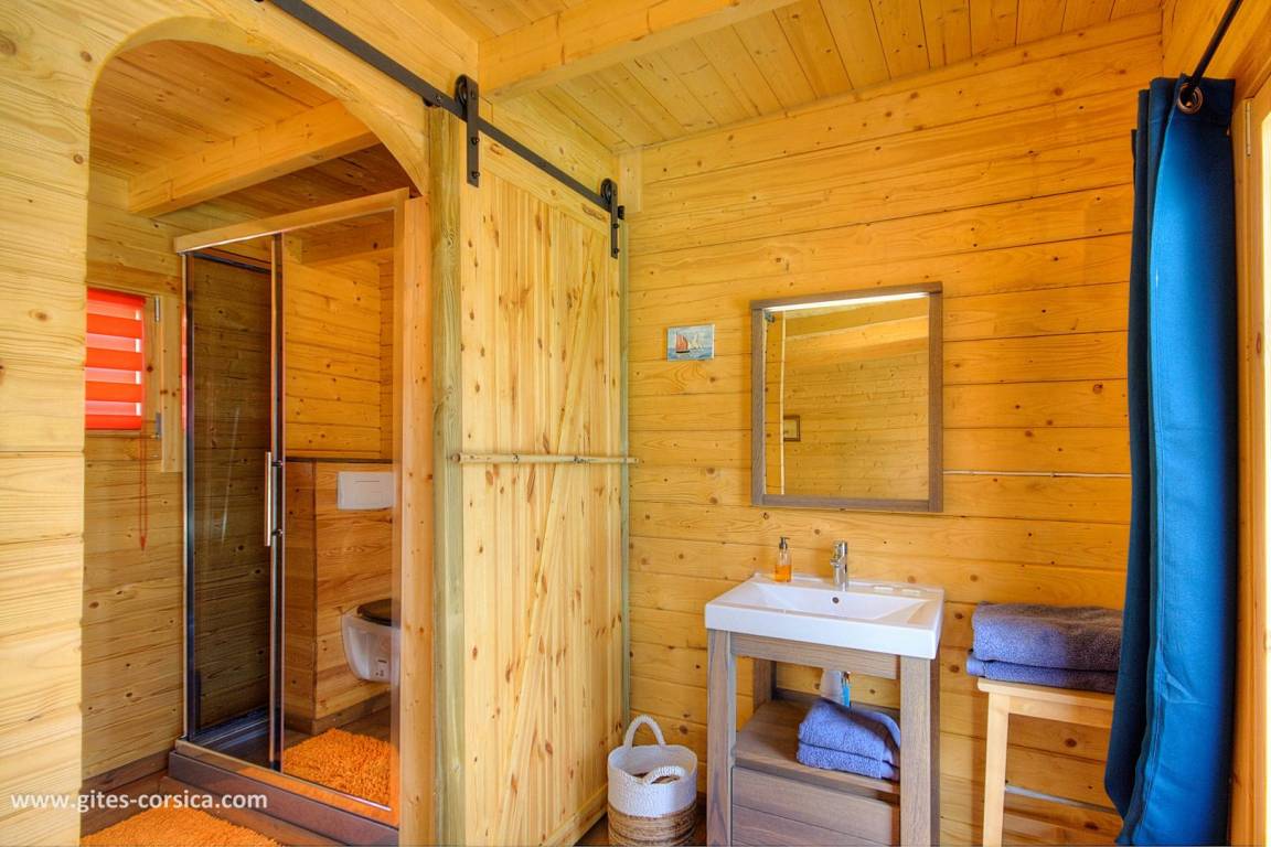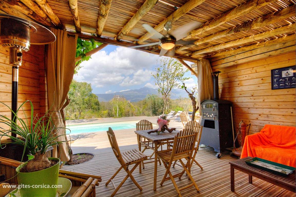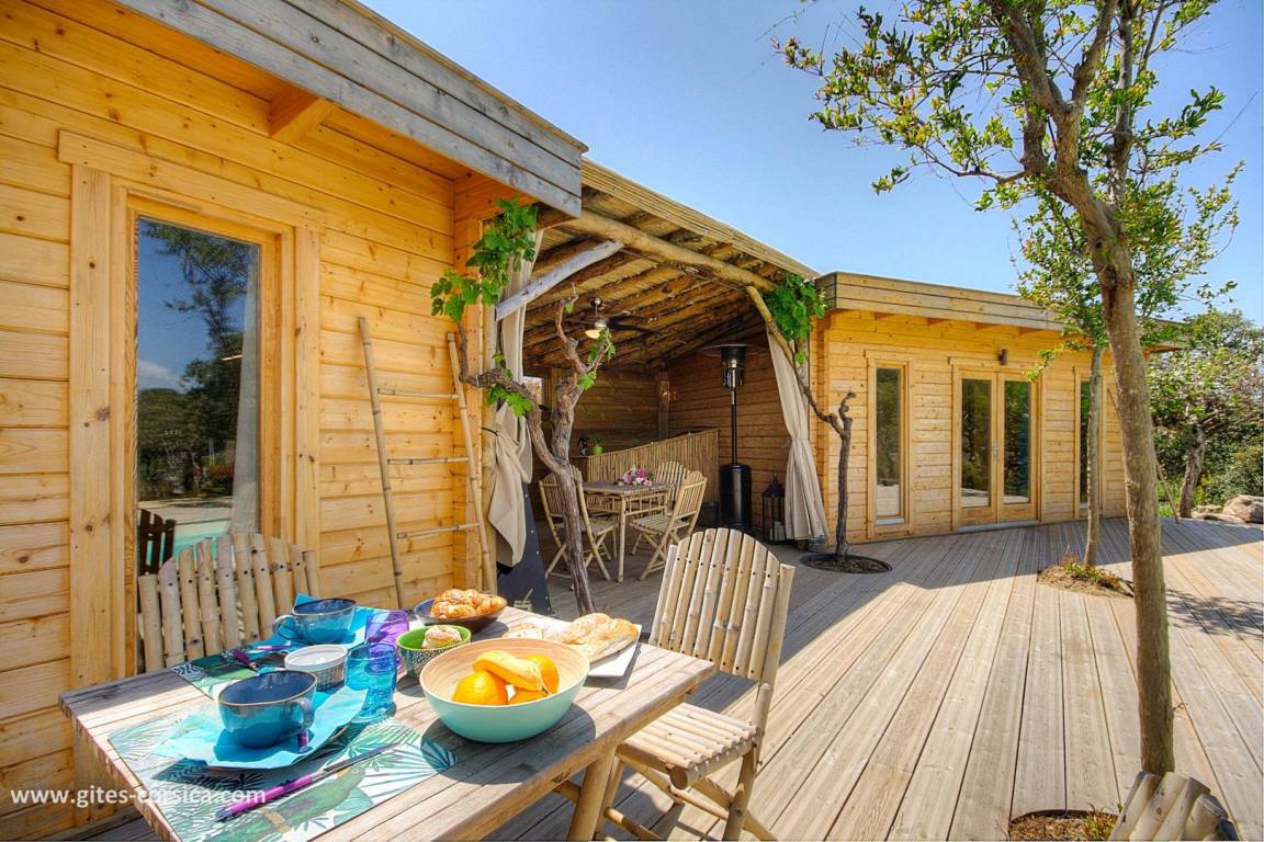 „Cabane située en pleine nature, au calme mise à part quelques avions. Superbe terrasse bien ensoleillée avec une très belle piscine. Une douche extérieure aurait été appréciée. Les transats seraient à remplacer. Localisation idéale pour accéder à Bonifacio, Porto Vecchio et les plages de l’extrême sud. La chalet en bois a quelque peu travaillé et les ouvrants ferment difficilement. Le propriétaire est réactif et à l’écoute des vacanciers.“