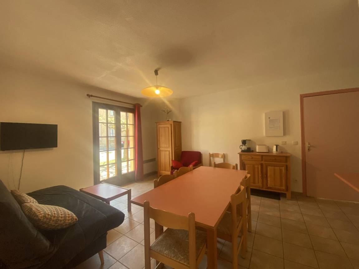„Louez sans hésiter l'ensemble des 3 gîtes pour vos séjours en famille ou entre amis, c'est super-pratique. Vous vous réunirez au calme dans le grand jardin commun pour les repas et les moments convivaux, mais chacun "chez soi" pour les nuits. C'est notre deuxième séjour d'été dans un de ces trois gîtes municipaux, idéalement situés au coeur du village de FIllols. Cet été, en duo, l'an dernier nous étions venus à 14.Accueil (par Rozenn): Parfait comme toujours. Situation: Idéale, à quelques pas du coeur du village et de sa place animée, mais pas trop près des cloches (qui sonnent jour et nuit, chaque ¼ d'heure) et des bistrots (qui fêtent tard).Propreté "bon" car l'état du gîte dépend de la qualité du ménage fait par les locataires précédents. Dans notre cas, gîte très propre sauf les sols, qui avaiet été lavés avec des serpillères déjà bien sales. Ca ne se voyait pas mais ça se sent bien si on marche pieds nus!Ce serait bien de pouvoir proposer une prestation "ménage de sortie" pour pallier à ça. Confort: Bon. Le gîte vient d'être repeint à neuf. Mobilier solide, lits très corrects, canapé neuf; la vaisselle est un peu disparate et aléatoire mais c'est rigolo et on ne manque de rien. Par contre, devoir poser la cafetière ou la bouilloire sur le domino (plaques électriques) pour pouvoir la brancher, c'est problématique. Il manque clairement une prise électrique au dessus du plan-bar pour résoudre ce souci. D'autant plus que la seule prise est située au dessus de l'égouttoir donc bien trop près de l'évier. Par ailleurs, il n'y a toujours pas de patins sous les pieds des chaises et ça crisse sur le carrelage; on a donc bien entendu les voisins du gîte bleu (mitoyen) et nos deux gîtes ont dû bien gêner les occupants du gîte vert (situé en dessous).A noter: Chaque gîte peut accueillir 6 personnes mais le petit frigo est déjà à peine suffisant pour deux, en été. Or à Fillols, pas de commerces, il faut prendre la voiture et descendre à Vernet les Bains pour“
