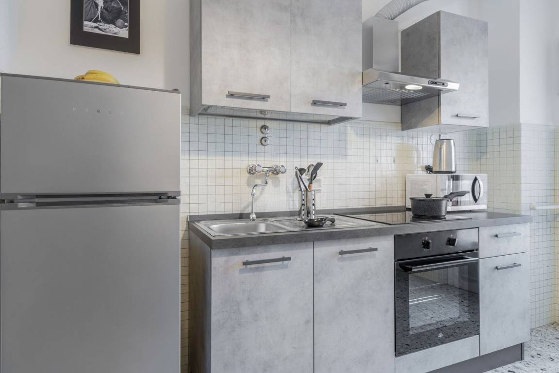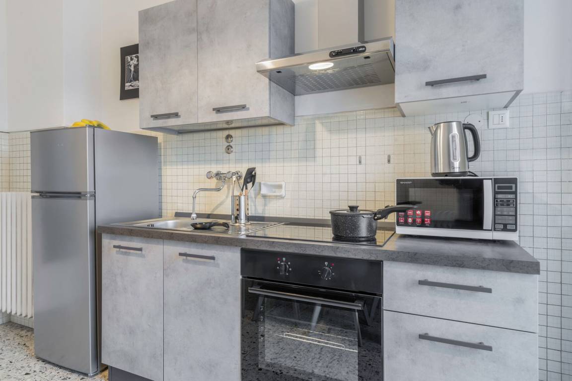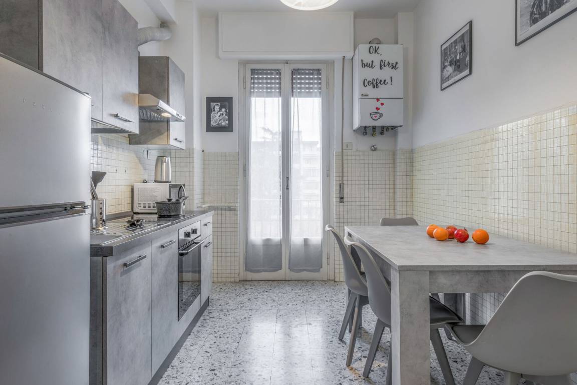 Küche: gut ausgestattete Küche, Esstisch, Kühlschrank, Tiefkühler, Mikrowelle, Herd, Italienische Kaffeemaschine, WiFi Internet, Ausgang auf den Balkon.