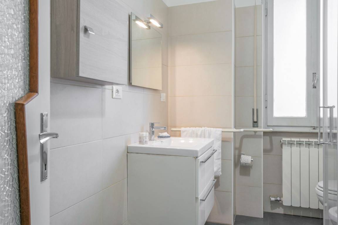 Badezimmer: Waschbecken, WC, Bidet, Dusche, Waschmaschine, WiFi Internet.