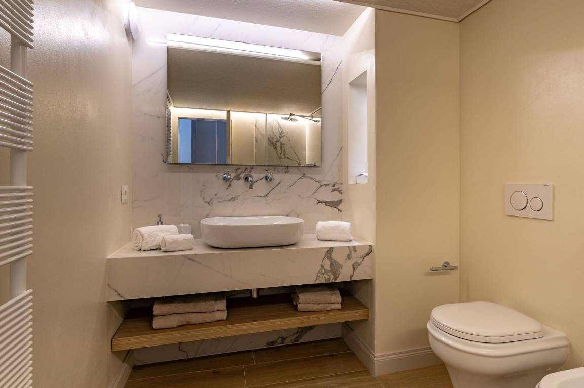 Badezimmer: Waschbecken, WC, Bidet, Dusche, Fön, WiFi Internet.
