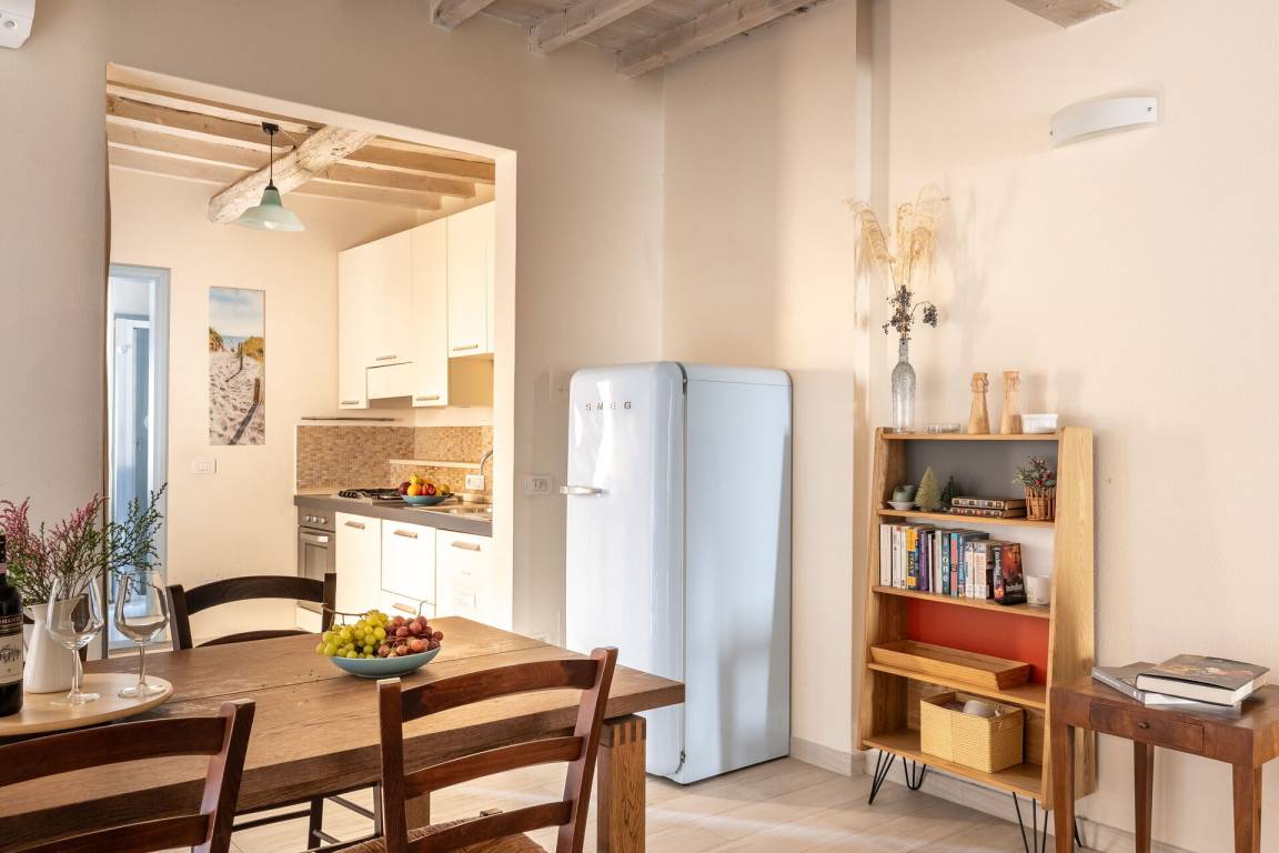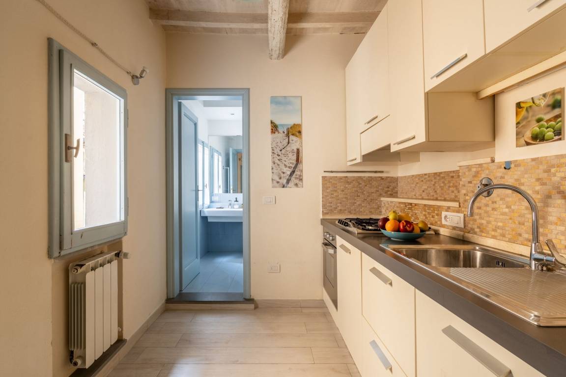 Wohnküche: gut ausgestattete Küche, Esstisch, Spülmaschine, Kühlschrank, Tiefkühler, Herd, Ofen, Italienische Kaffeemaschine, Doppel-Schlafsofa, WiFi Internet, Klimaanlage, TV.