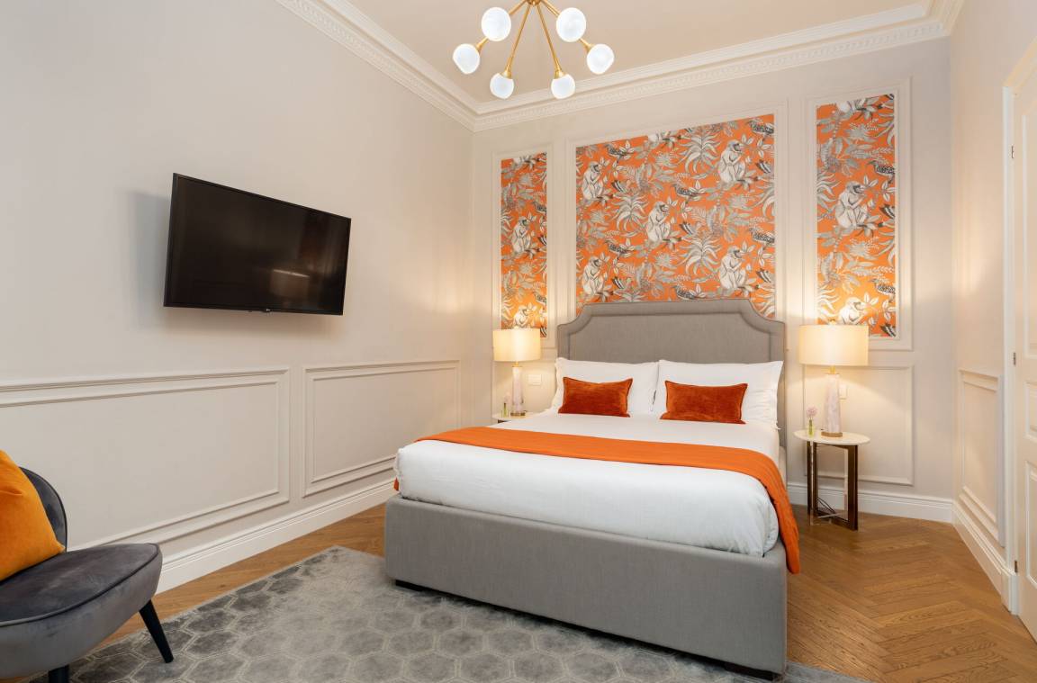 Schlafzimmer mit Bad 1: Doppelbett, WiFi Internet, Klimaanlage, Satelliten-TV, Waschbecken, WC, Bidet, Dusche.