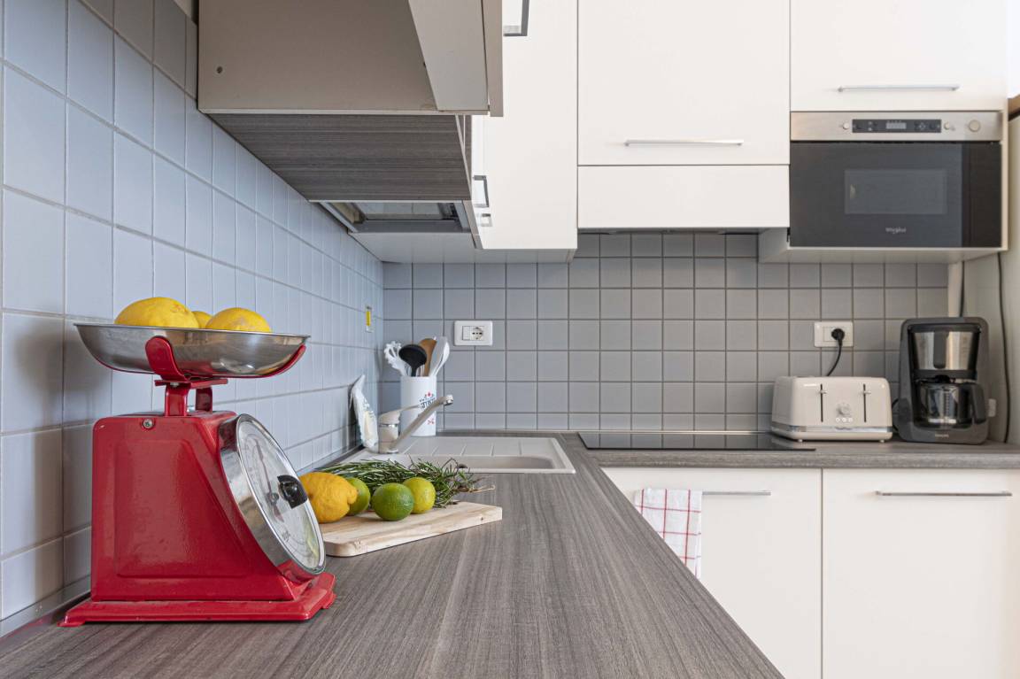 Wohnküche: gut ausgestattete Küche, Esstisch, Spülmaschine, Kühlschrank, Tiefkühler, Mikrowelle, Herd, Ofen, Toaster, Amerikanische Kaffeemaschine, Sofa, WiFi Internet, Klimaanlage, Satelliten-TV.