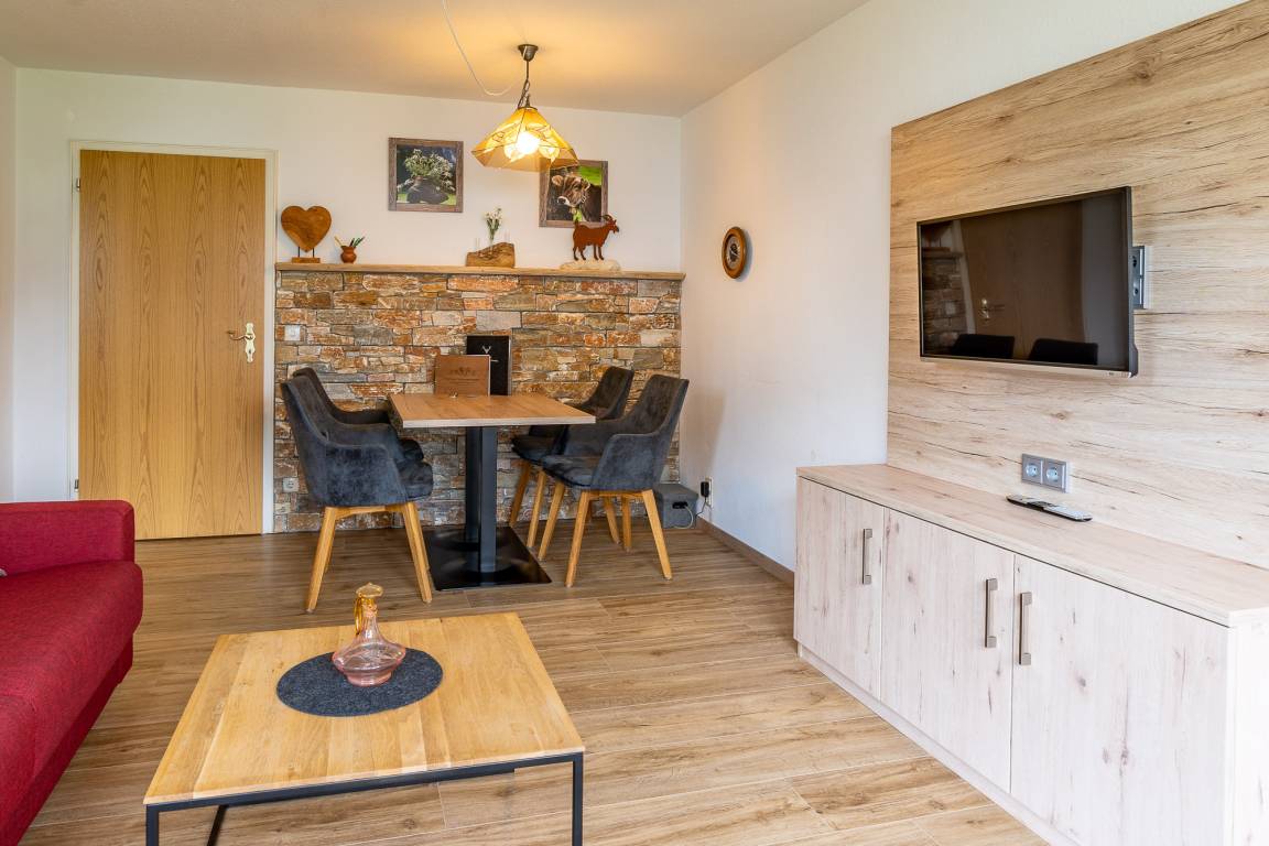 Die großzügige 2-Zimmer-Wohnung für bis zu 4 Personen befindet sich im Hochparterre und bietet Ihnen einen großen Südbalkon, von dem Sie eine faszinierende Aussicht in die Allgäuer Alpen genießen können.