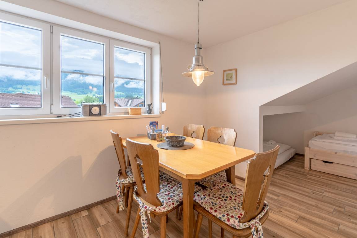 Die zwei Zimmer Wohnung befindet sich im Dachgeschoss des Ferienhauses Grünten.