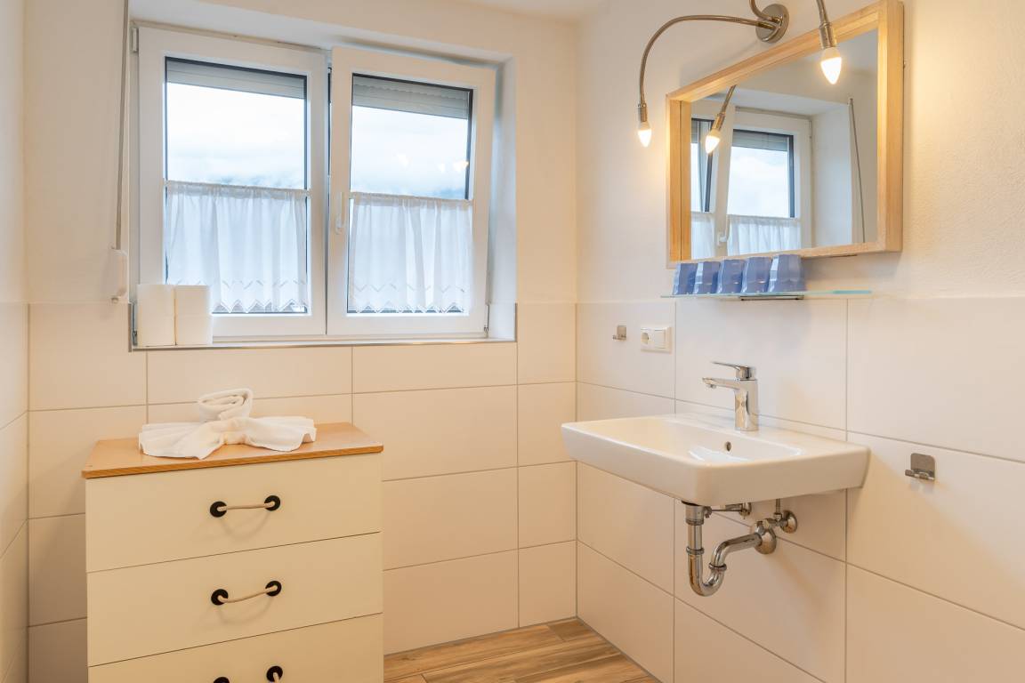 Das Tageslichtbad beinhaltet eine Dusche, ein Waschbecken und ein WC.