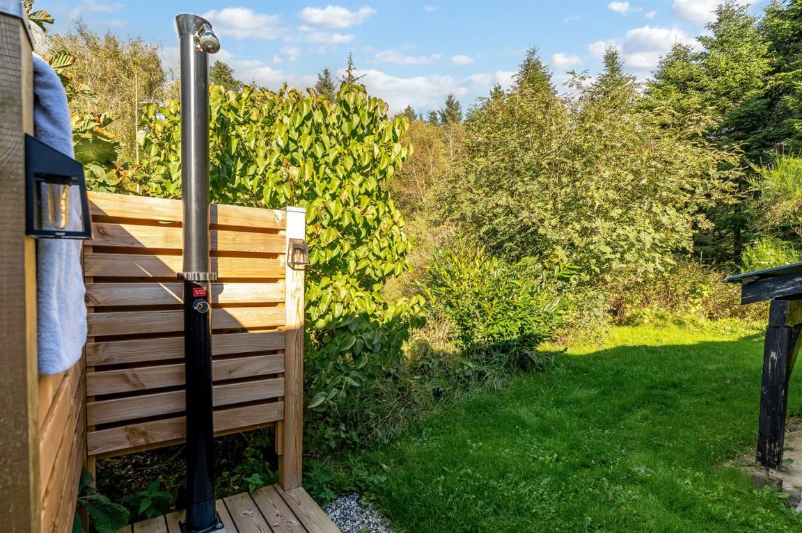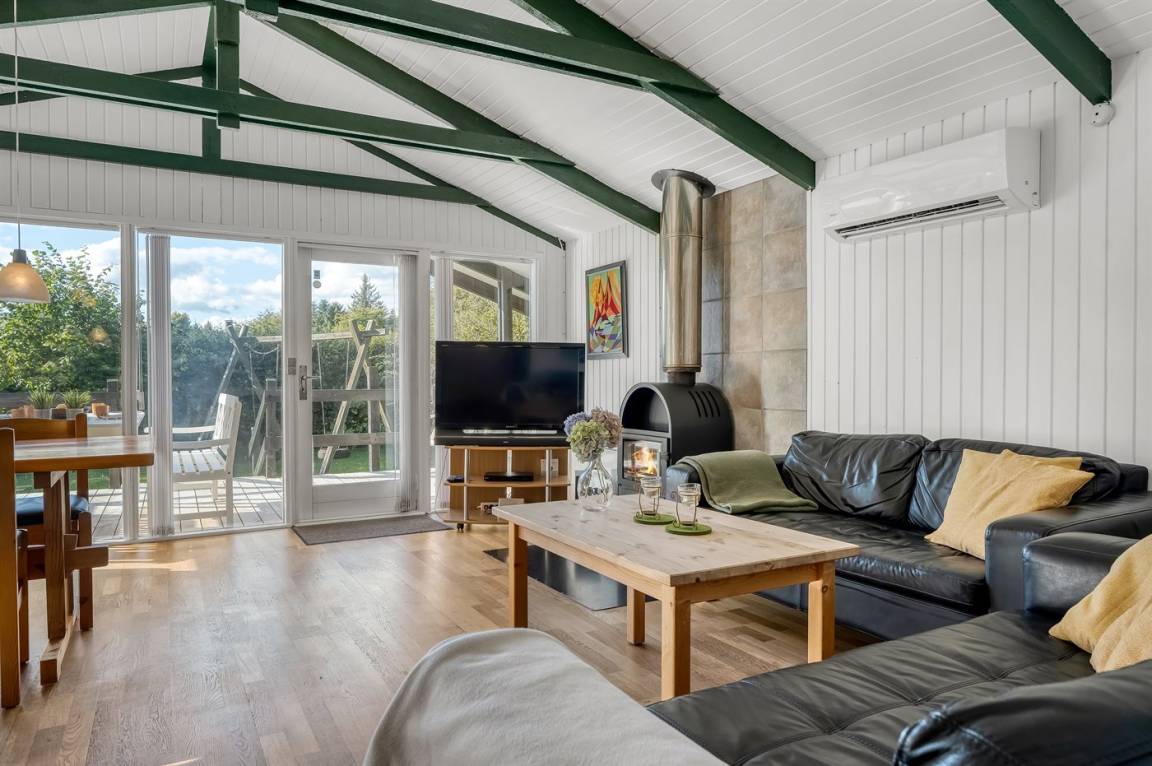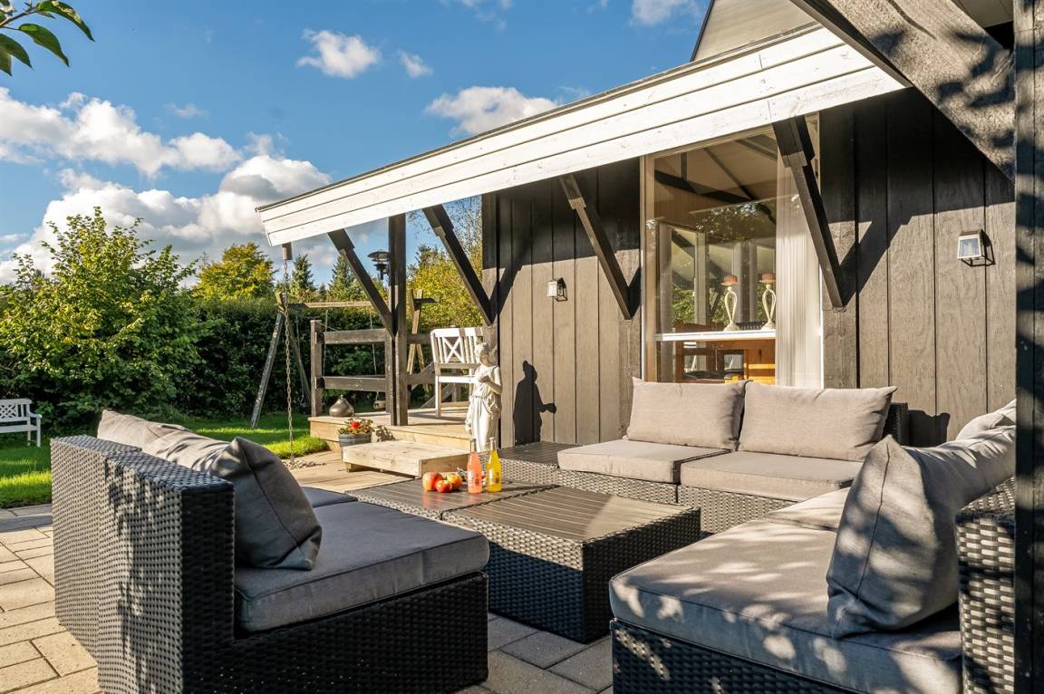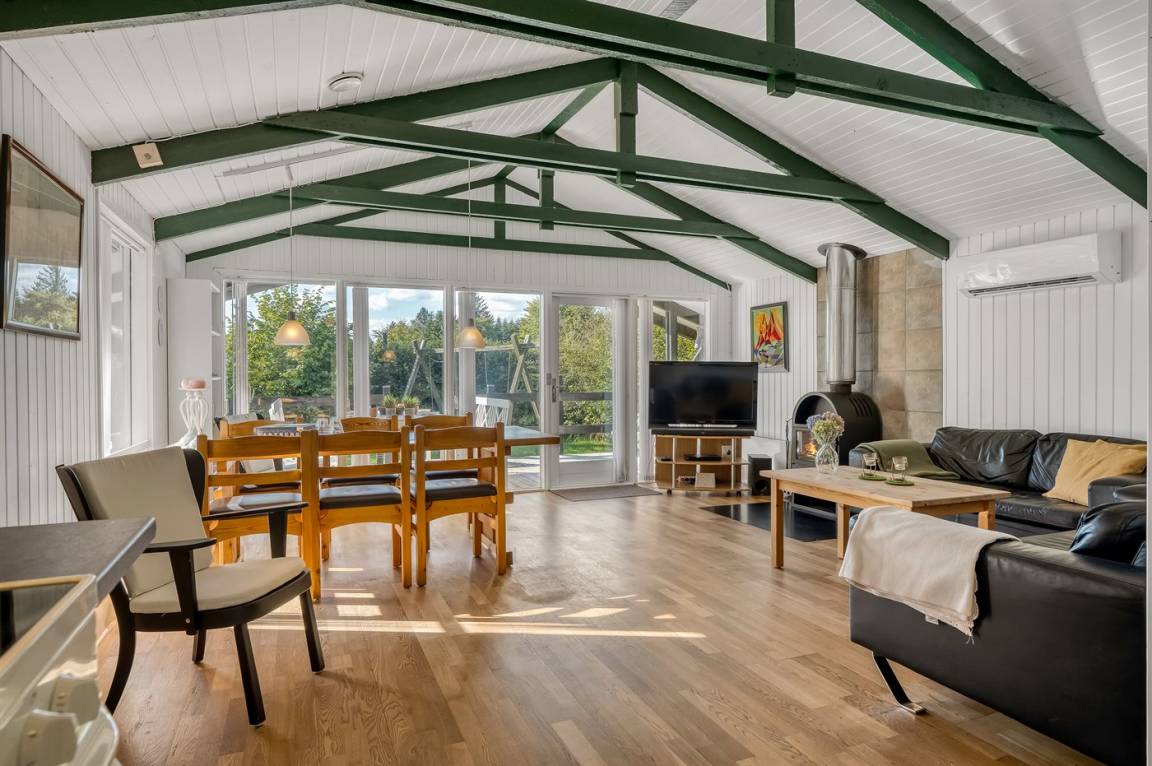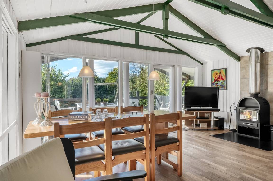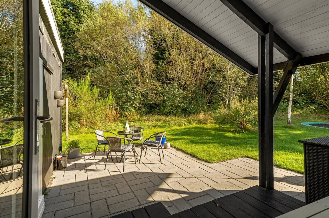 DraußenDie Ferienunterkunft liegt auf einem 899 m² großen Naturgrundstück. Die Entfernung zum Meer beträgt 3500 m. Die Entfernung zum Fjord beträgt 3500 m. Die nächste Einkaufsmöglichkeit liegt 1500 m entfernt. Es steht ein offenes Terrassenareal zur Verfügung. Außerdem gibt es überdachte Terrasse. Geräteraum. Schaukel. Trampolin. Außendusche. Es steht ein Grill zur Verfügung. Es ist ein Ladestecker für Elektroautos installiert. CEE Stecker. Mit einer Ladeleistung von 11 kW. Parkplatz auf dem Grundstück.
