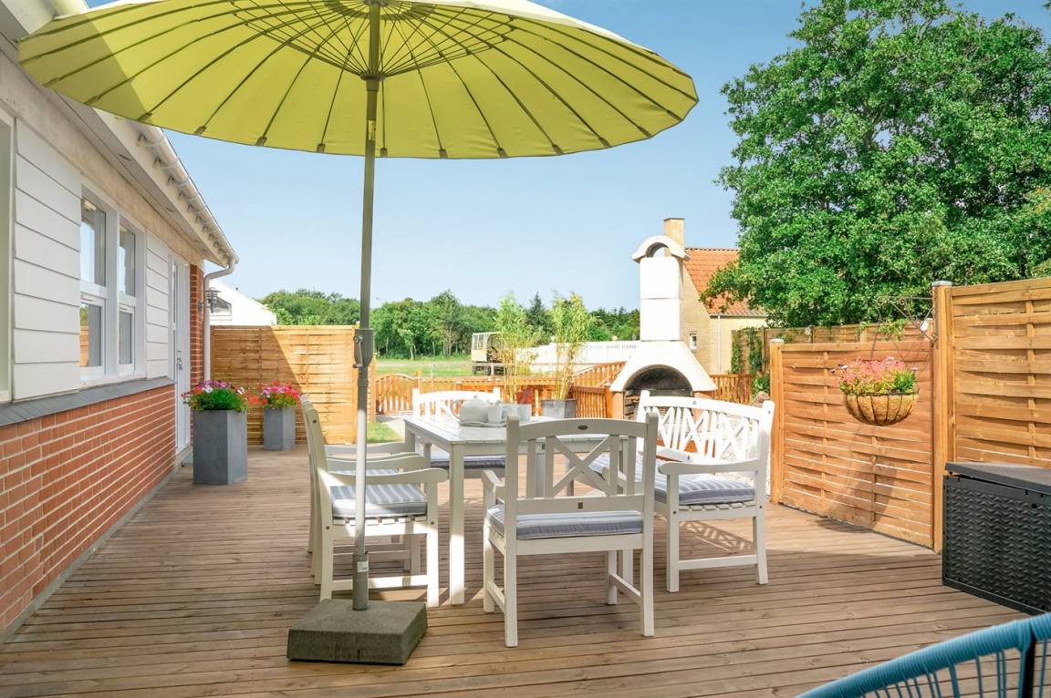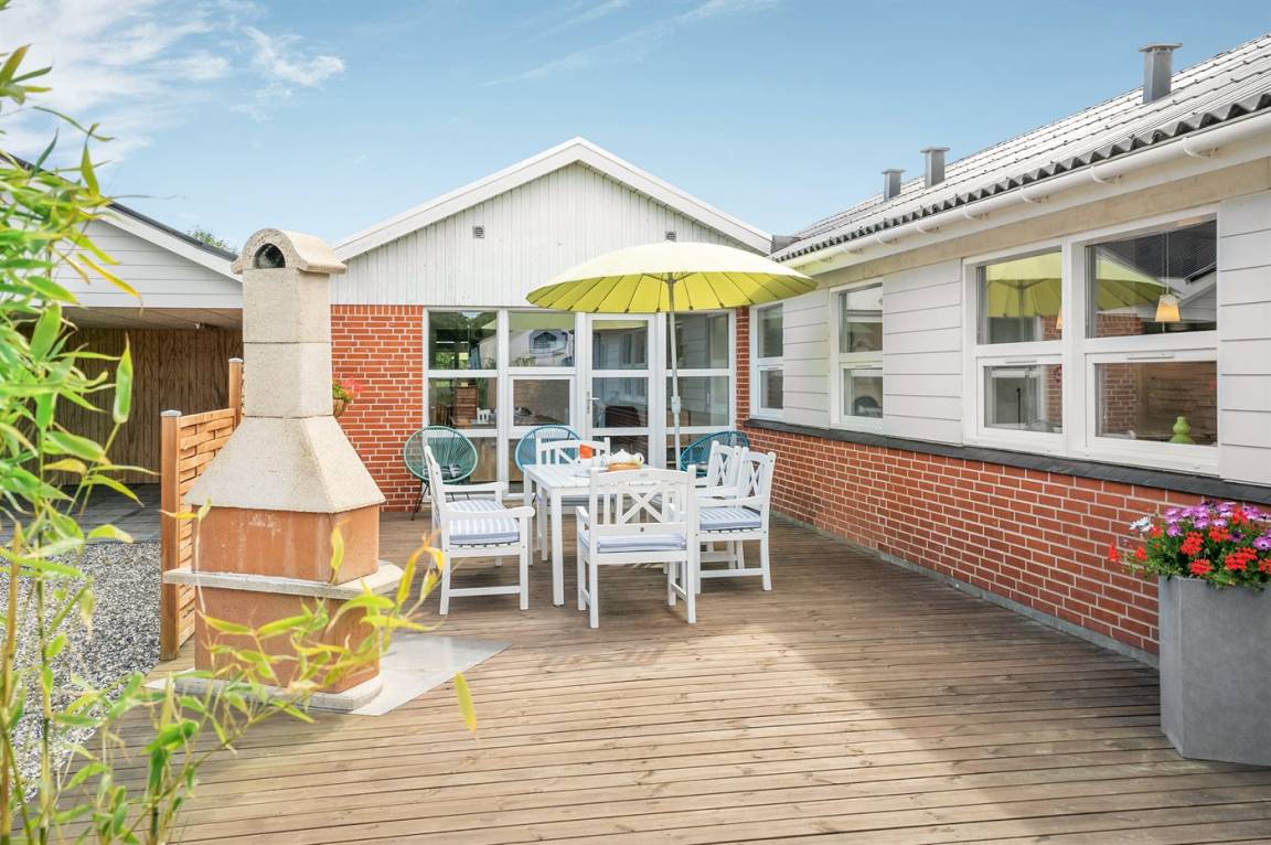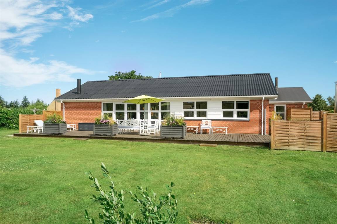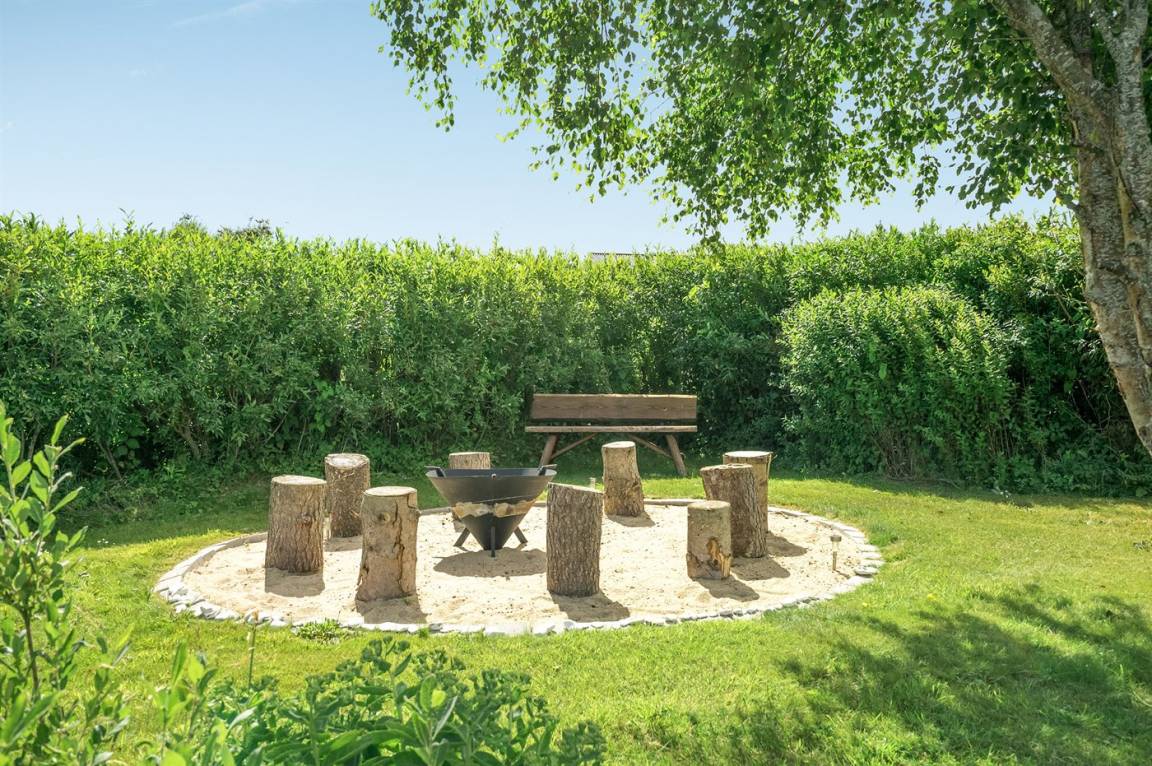 DraußenDie Ferienunterkunft liegt auf einem 1190 m² großen Gartengrundstück. Das Grundstück ist eingezäunt. Die Entfernung zum Meer beträgt 500 m. Die nächste Einkaufsmöglichkeit liegt 2500 m entfernt. In einem Abstand von 10000 m gibt es einen Golfplatz. Es steht ein 200 m² Terrassenareal zur Verfügung. Schaukel. Sandkasten. Trampolin. Rutsche. Schaukel-Wippe. Petanque. Fußballtor.Lagerfeuerstelle. Außendusche. An Sommerabenden sorgt der Außenkamin für eine gemütliche Atmosphäre. Es steht ein Carport zur Verfügung. Es ist ein Ladestecker für Elektroautos installiert. CEE Stecker. Parkplatz auf dem Grundstück.