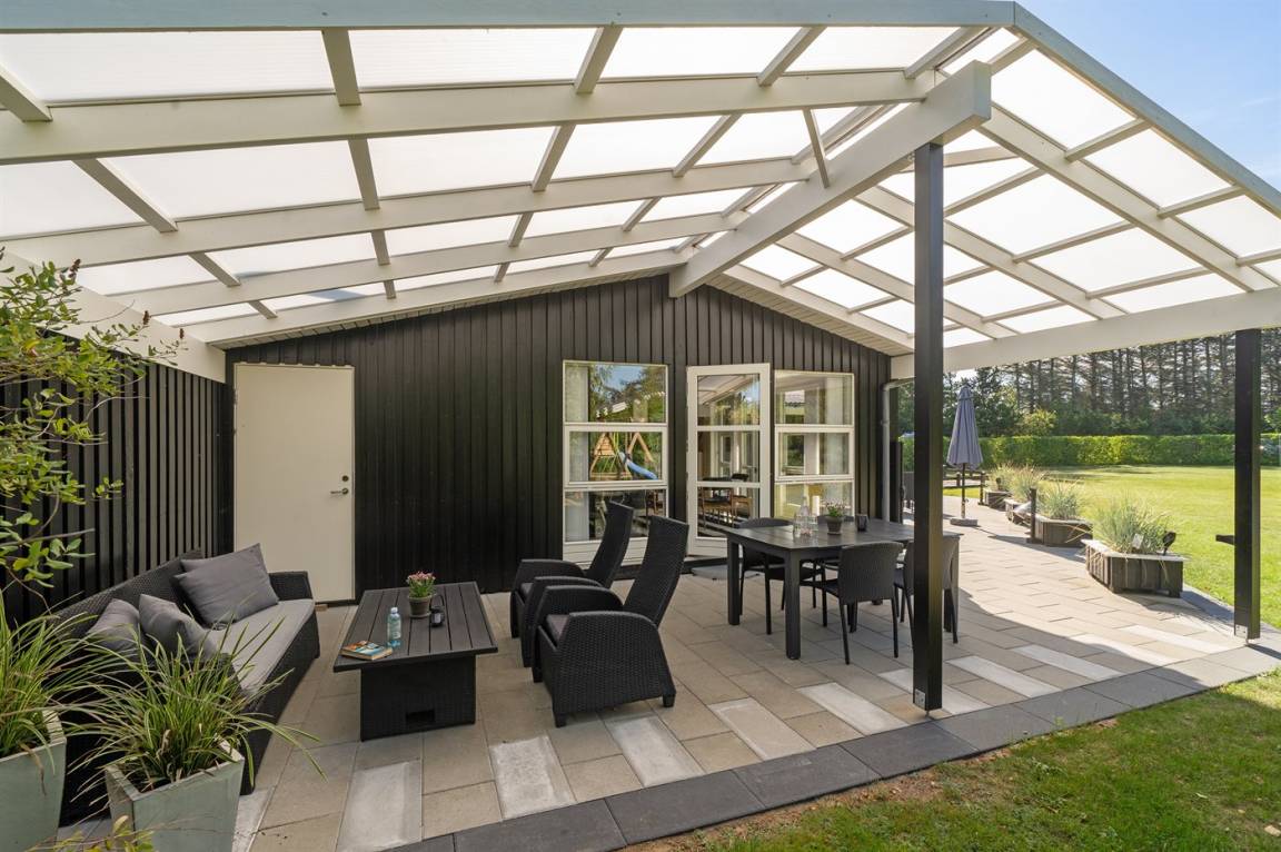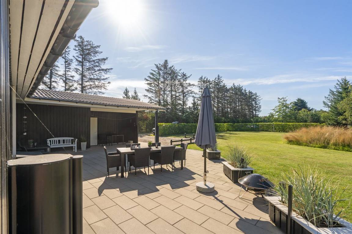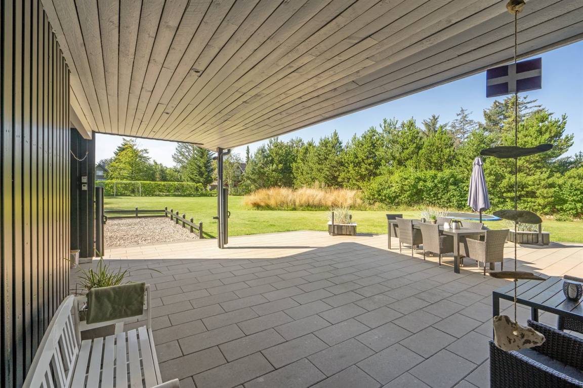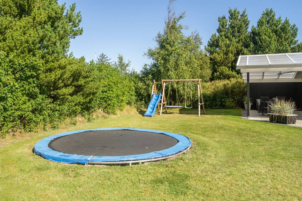 DraußenDie Ferienunterkunft liegt auf einem 1700 m² großen Naturgrundstück. Die Entfernung zum Meer beträgt 400 m. Die nächste Einkaufsmöglichkeit liegt 1000 m entfernt. Es steht ein 65 m² Terrassenareal zur Verfügung. Außerdem gibt es 30 m² überdachte Terrasse. Geräteraum. Schaukel. Trampolin. Fußballtor. Es ist ein Ladestecker für Elektroautos installiert. Ladestecker Typ 2. Mit einer Ladeleistung von 11 kW. Parkplatz auf dem Grundstück.