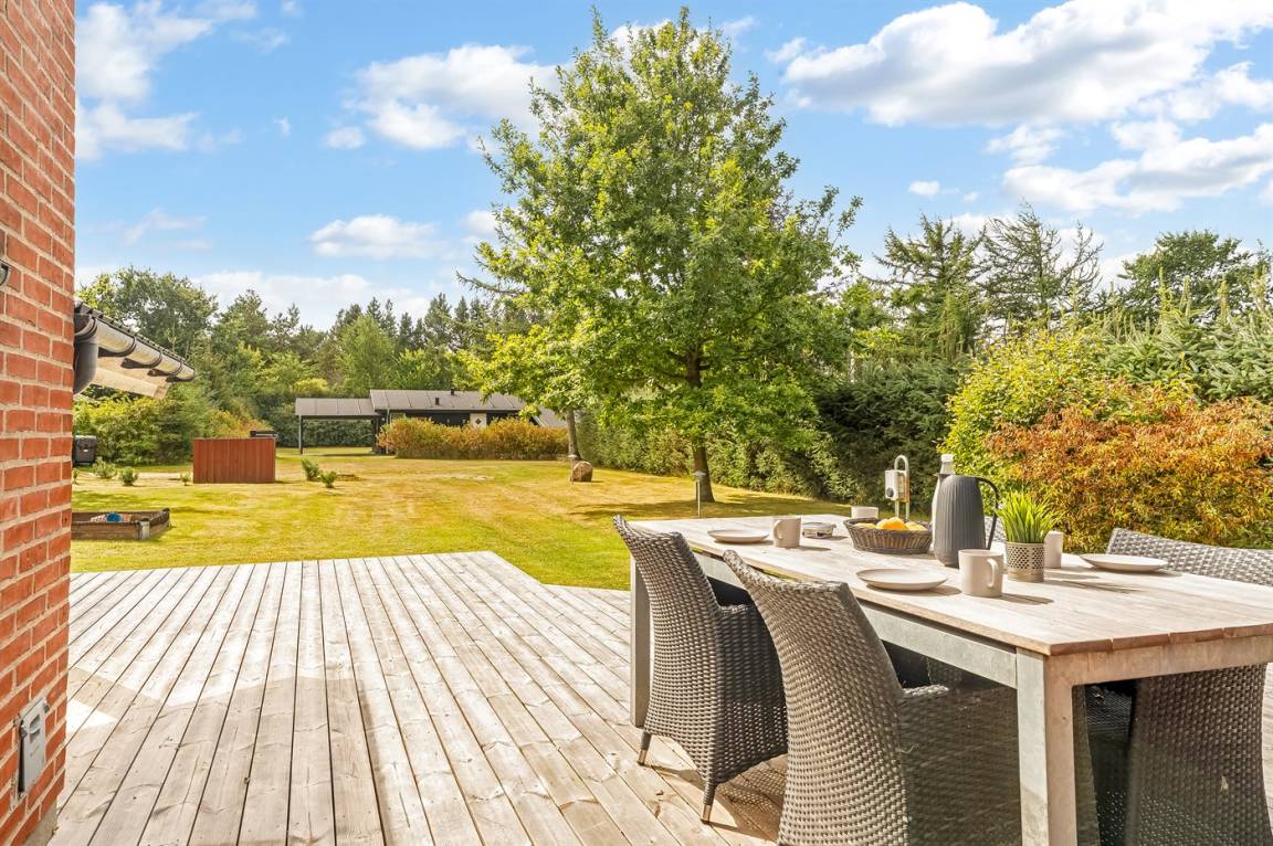 Dieses schöne Ferienhaus liegt auf einem großen Grundstück mit Platz für Ballspiele und andere Aktivitäten im Freien. Zum Haus gehören gute Terrassen und ein Gästehaus, das mit 2 der insgesamt 6 Schlafplätze eingerichtet ist.