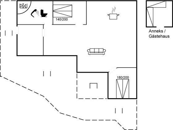 MultimedienIn der Ferienunterkunft gibt es einen Fernseher. DVD-Player. Radio. Stereoanlage. 1-3 dänische Fernsehsender. Mindestens 4 deutsche Fernsehsender. Es steht kabellose Internetverbindung zur Verfügung.