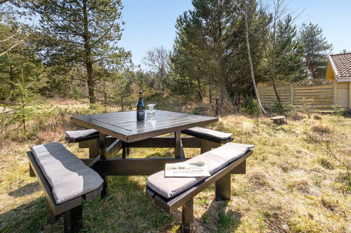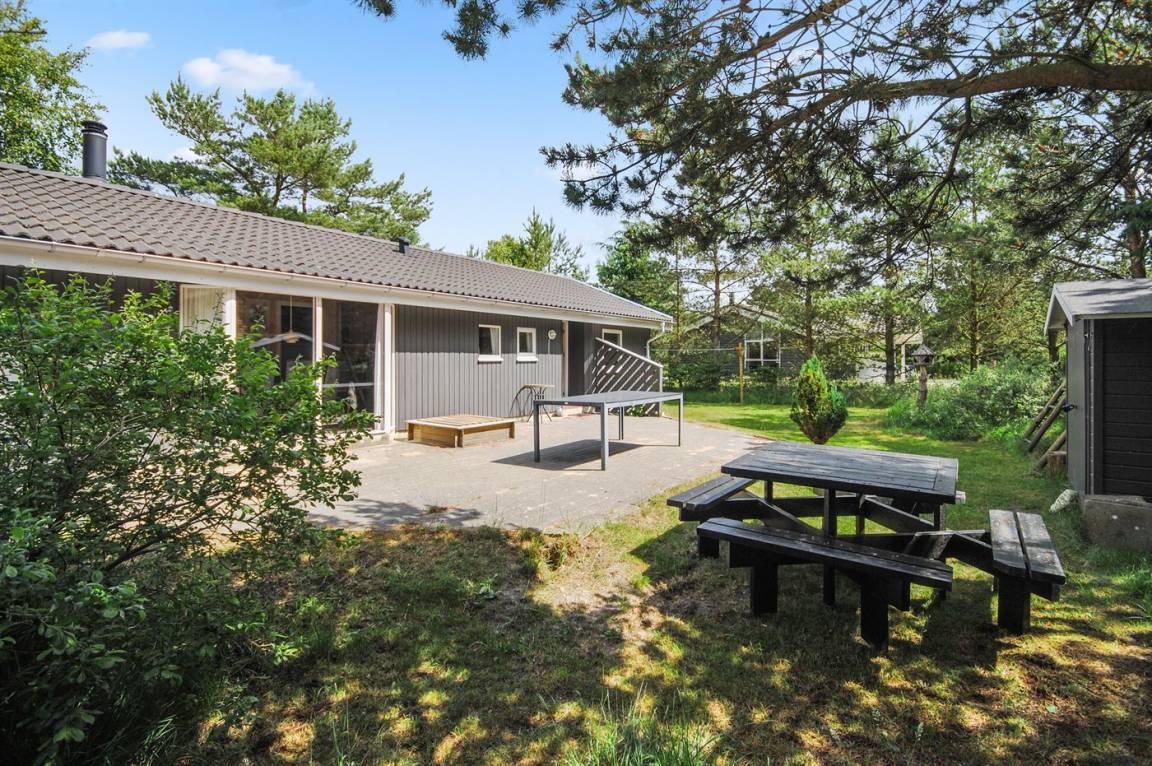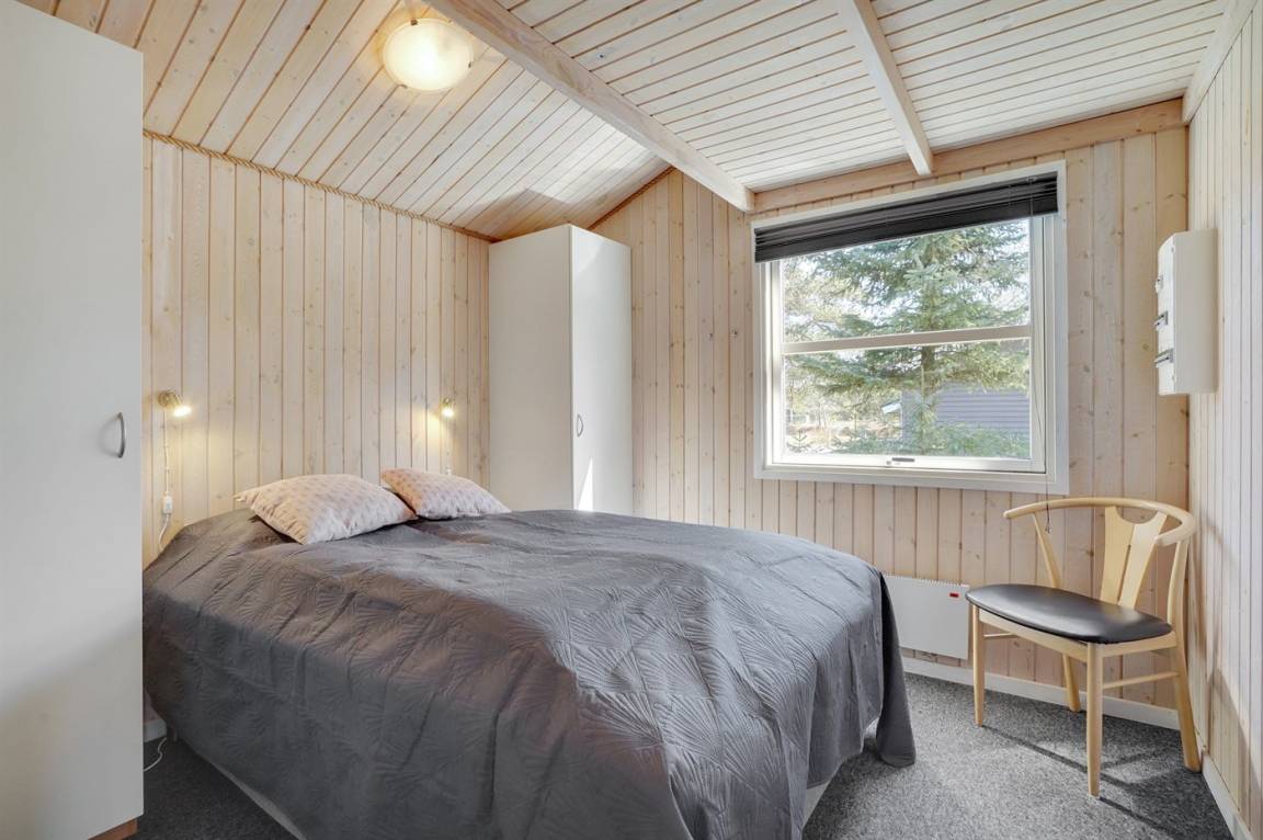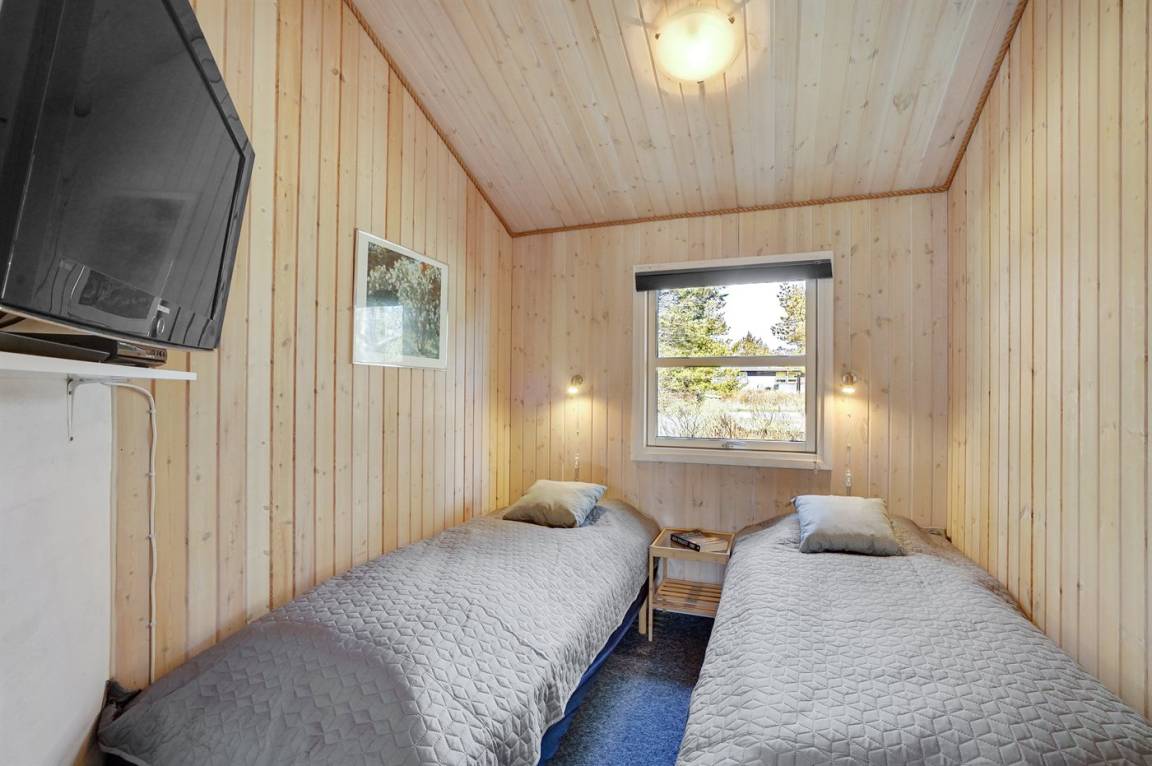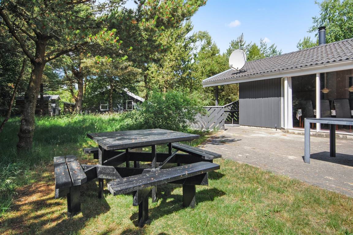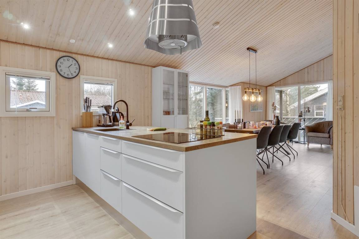 Ein wirklich schönes, gut ausgestattetes Ferienhaus, 2000 gebaut und laufend renoviert. Offene sowohl als überdachte Terrasse mit netten Gartenmöbeln. Innen sind Wände und Decken mit hellem Holz verkleidet, Holzboden in dem Wohnzimmer und Teppichboden in den Zimmern. 2 schöne Badezimmer mit Duschnische und Fußbodenheizung; das eine Badezimmer hat ebenfalls einen schönen 2-Pers.-Whirlpool und Zugang zur Sauna. Die Küche ist mit dem Wohnzimmer kombiniert und enthält u. a. Herd mit Ceran-Feld, Umluftofen, Tiefkühlgerät, Mikrowelle und Geschirrspüler. Schönes, großes Wohnzimmer mit Kaminofen, TV mit digitalem Satellitenanschluss, Video, DVD-Spieler und Stereoanlage mit CD-Spieler. Kostenlose ADSL-Internetverbindung (eigener Computer muss mitgebracht werden). Offenes Obergeschoss mit TV für Spiele. Das Haus ist mit 4 Schlafzimmer eingerichtet: 2 mit Doppelbett und 2 mit je 2 Einzelbetten. Ferner gibt es 2 Schlafplätze auf Matratzen im offenen Obergeschoss. An weiterer Ausstattung können Waschmaschine, Wäschetrockner und 2 zusätzliche TV's erwähnt werden. Für die kleinen Feriengäste stehen Schaukel, Sandkasten, Kinderbett und Kinderhochstuhl zur Verfügung. Das Haus ist ein besonders schönes Ferienhaus für sowohl 1 als auch 2 Familien. Das naturschöne Gebiet bietet viele Möglichkeiten für Wanderungen in der großartigen Natur entweder im Waldgebiet oder beim Meer, wo Sie abends die Fischer arbeiten sehen können. Es gibt besonders gute Bade- und Angelmöglichkeiten im Gehabstand vom Haus. In der nah gelegenen Stadt Fjerritslev gibt es viele Aktivitätsmöglichkeiten, u. a. Schwimmhalle, Bowling oder Shopping.