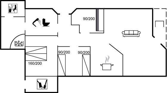 SchlafverhältnisseDie Schlafplätze verteilen sich auf 3 Schlafräume. 2 Schlafplätze in einem Doppelbett. 2 Schlafplätze in Einzelbetten. 2 Schlafplätze in einem Etagenbett. Ferner steht ein Kinderbett zur Verfügung.