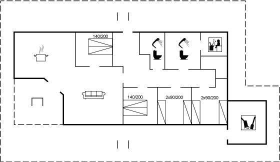 DraußenDie Ferienunterkunft liegt auf einem 1147 m² großen Naturgrundstück. Die Entfernung zum Meer beträgt 1000 m. Die Entfernung zum Fjord beträgt 15300 m.Die Entfernung zum Wattenmeer beträgt 11900 m. Die nächste Einkaufsmöglichkeit liegt 5000 m entfernt. In einem Abstand von 7700 m gibt es einen Golfplatz. Es steht ein offenes Terrassenareal zur Verfügung. Außerdem gibt es überdachte Terrasse. Geräteraum. Fußballtor. Die Entfernung zu einem Spielplatz beträgt 950 m.An Sommerabenden sorgt der Außenkamin für eine gemütliche Atmosphäre. Es steht ein Grill zur Verfügung. Parkplatz auf dem Grundstück.