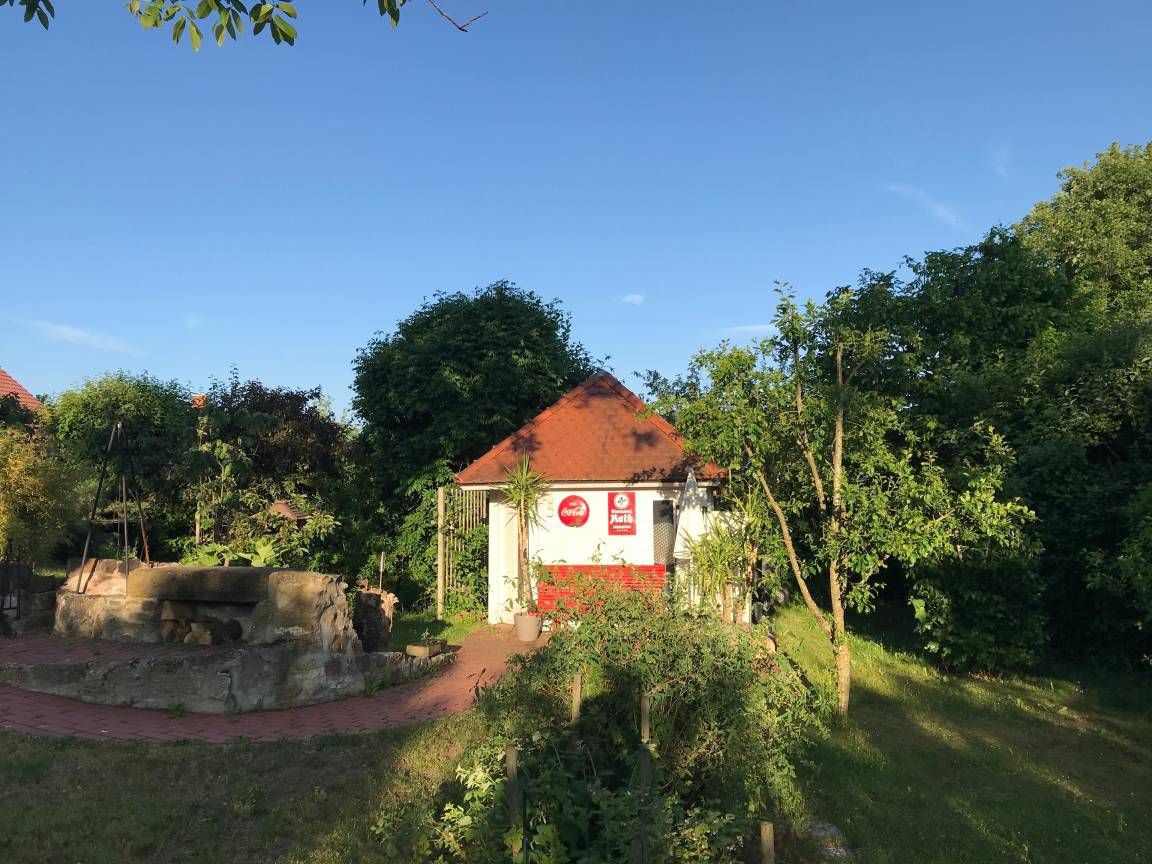 Eine Abkühlung bietet die Außendusche am Gartenhäuschen.