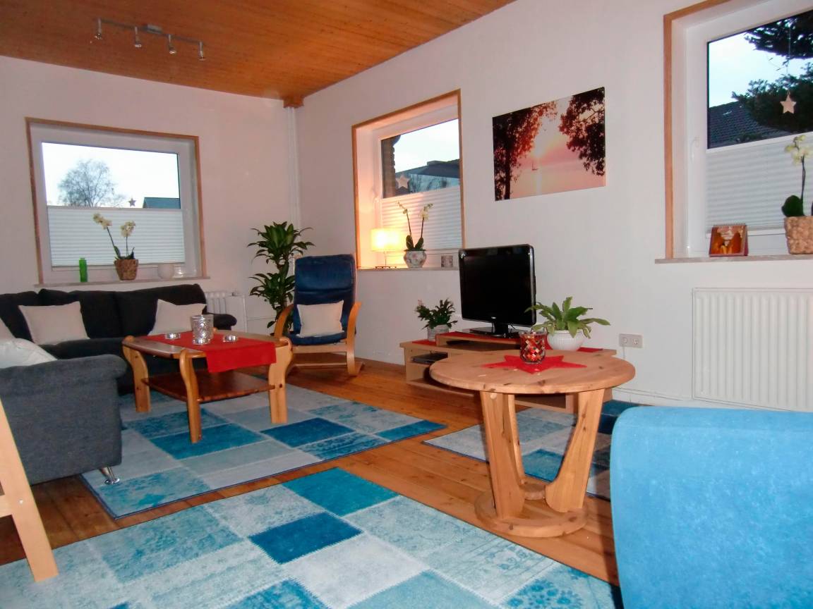 Sehr schöne, helle, gemütliche 3 - Zi., 75 qm Fewo. Sie befindet sich in einem Einfamilienhaus und liegt im EG. Die Fewo ist mit einer Küche, einem Wohnzimmer, zwei Schlafräumen (Echtholzfussböden), einem Flur, einem Duschbad, sowie Gäste-WC ausgestattet.