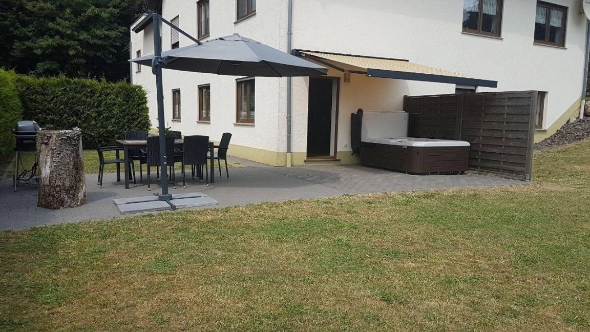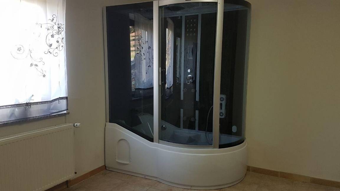Ferienwohnung im EG mit eigenem Eingang und Grundstück zur Alleinbenutzung, ganzjährig beheizter Außenwhirlpool, finnische Sauna, Dampfdusche mit Whirlpoolbadewanne, Grundstück komplett umzäunt